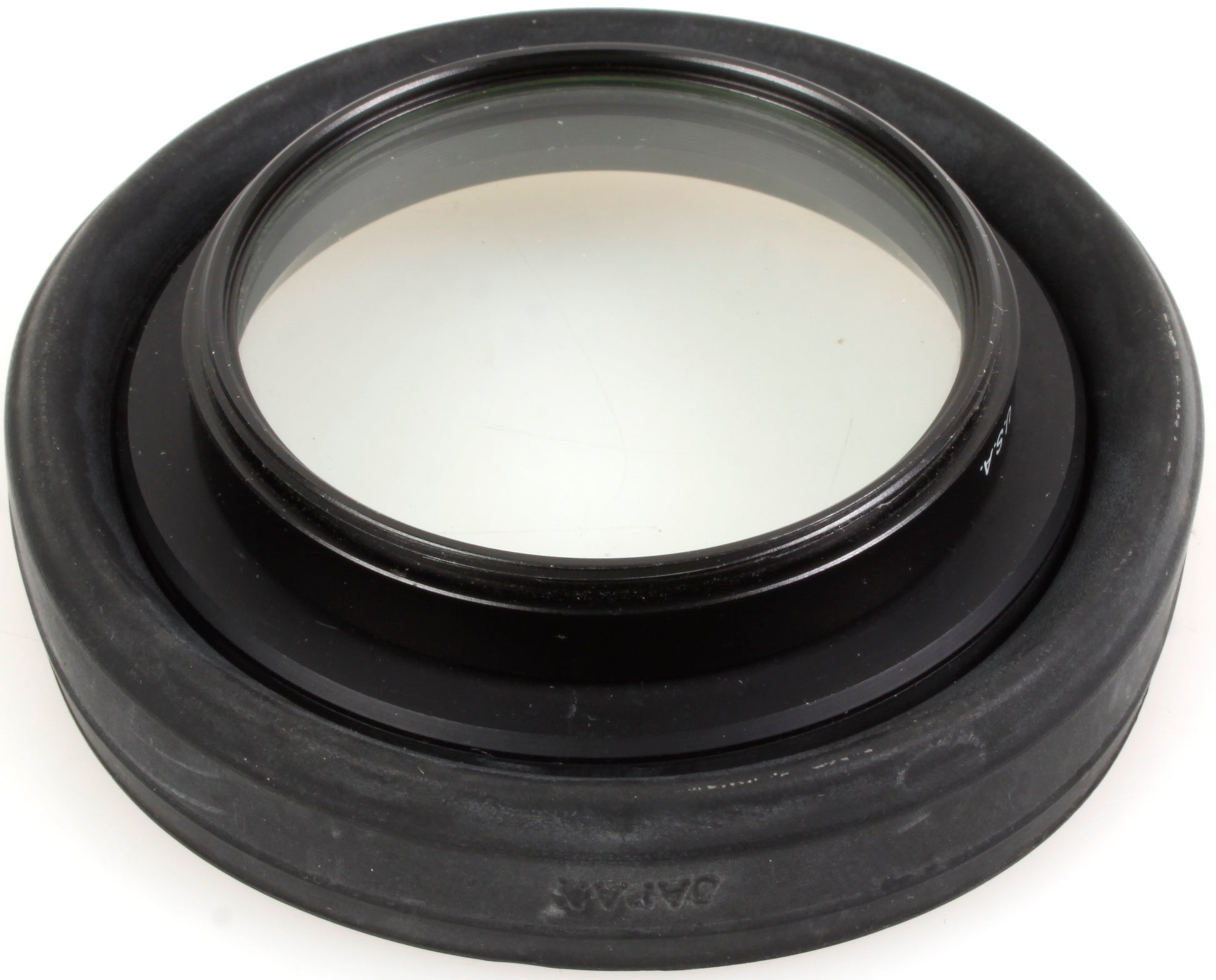 Good condition. Glass is free of scratches, blemishes and haziness. It is a 49mm Canon Haze 1 Filter w/ Sunshade