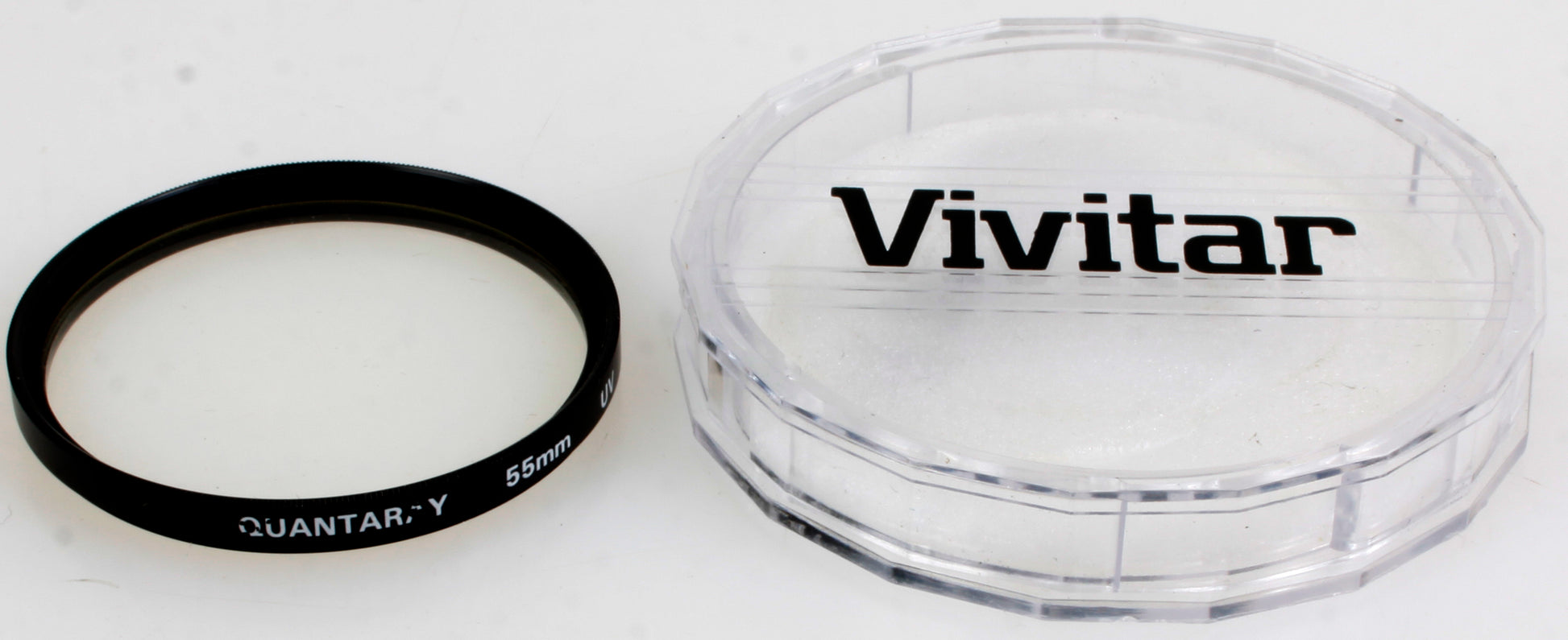 Good condition. This is a 55mm UV Filter. Glass is free of scratches, blemishes and haziness. Comes with case