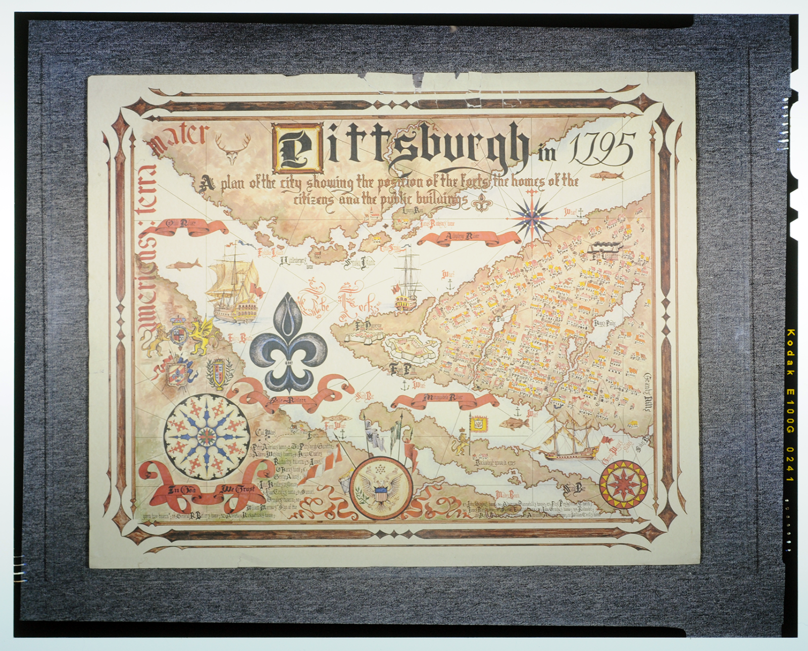 8x10 REPRINT of Map of Pittsburgh in 1795 with Forts, Houses, Public Buildings