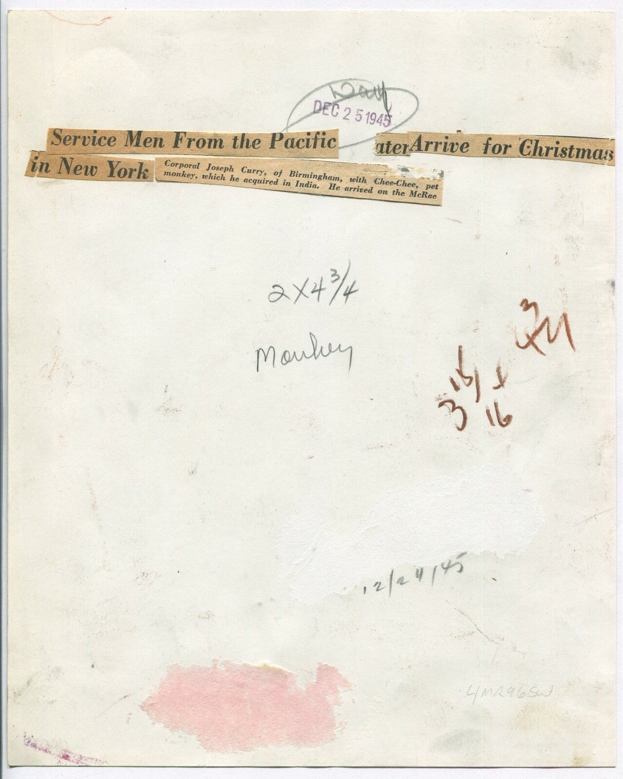 AFRICAN AMERICAN G.I. HOME FOR CHRISTMAS 1945. 8X10 B&W PRINT.