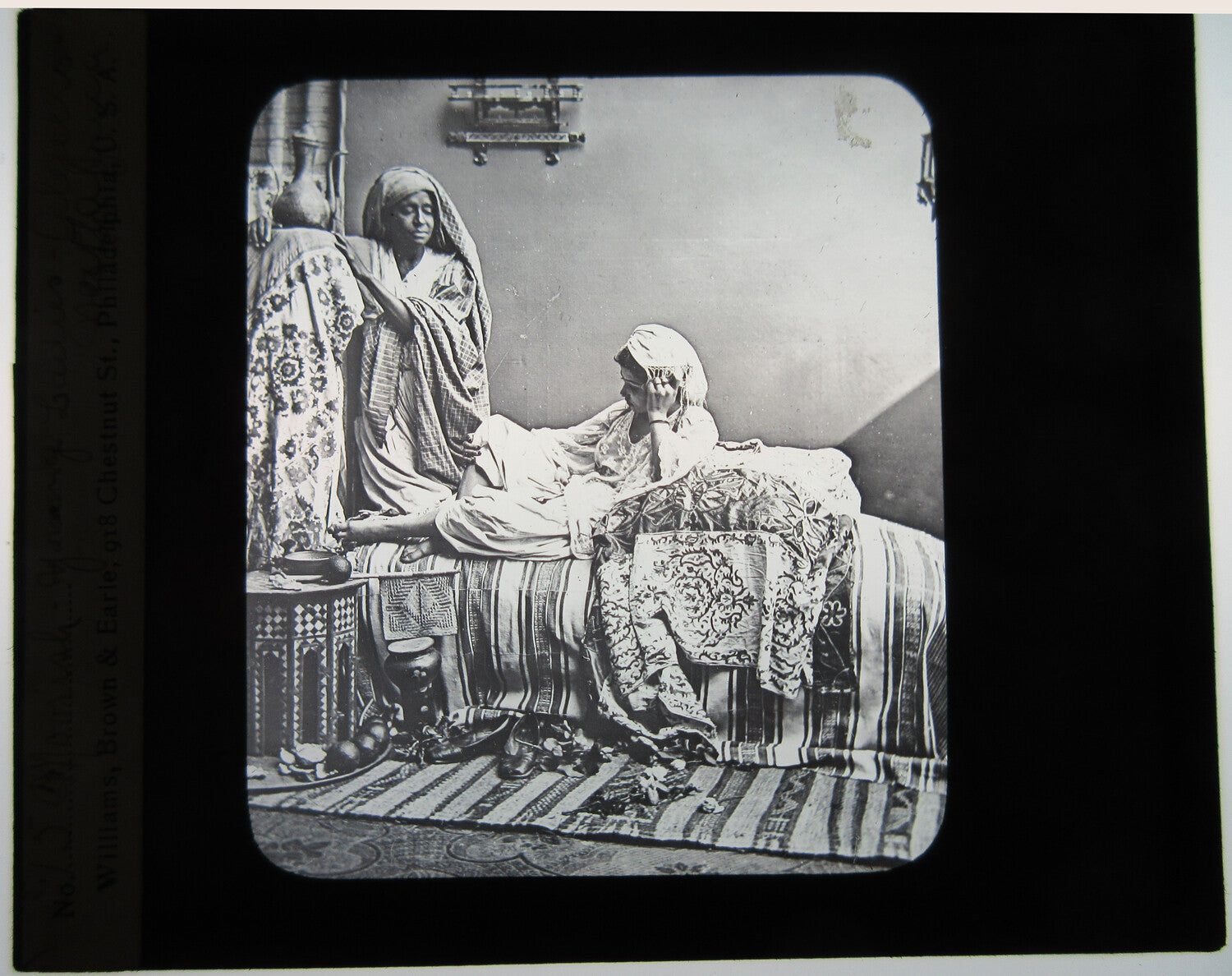 ALGERIAN WOMEN IN DOMESTIC SETTING. LANTERN SLIDE.