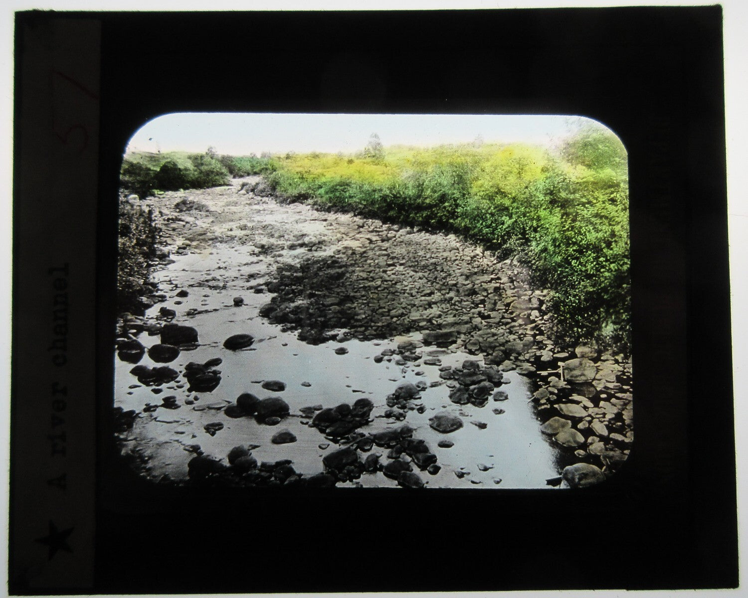 BEAUTIFUL RIVER CHANNEL. HAND COLORED PHOTO ON GLASS.