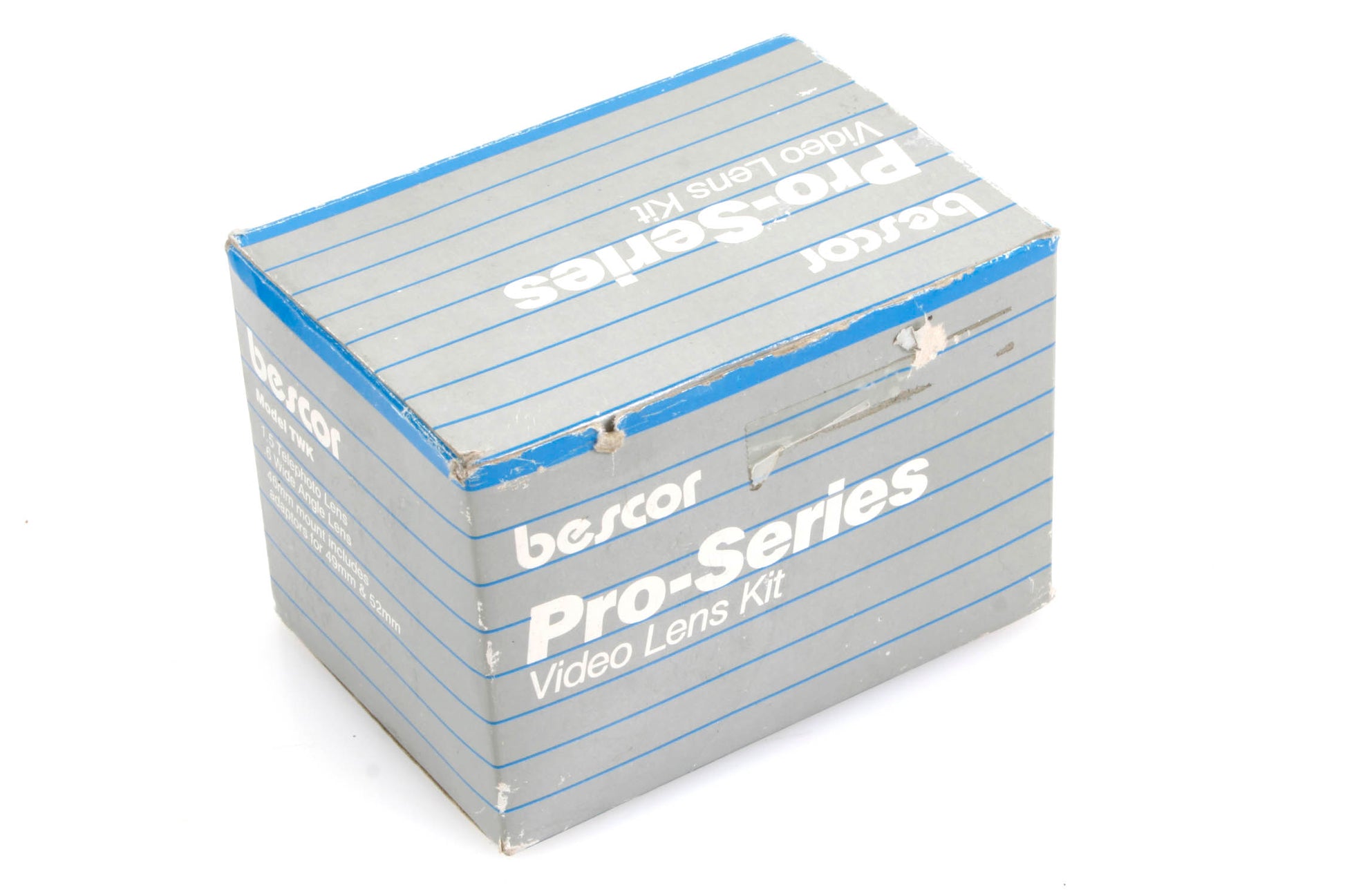 Bescor pro-series Video lens kit in original box and case. Lenses are clear and clean of any major errors. both have caps and come in a leather case.