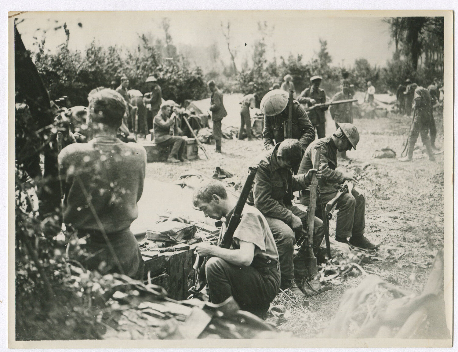 BRITISH TROOPS CLEANING GUNS, BATTLE OF FLANDERS. WWI. (8X10 REPRINT)