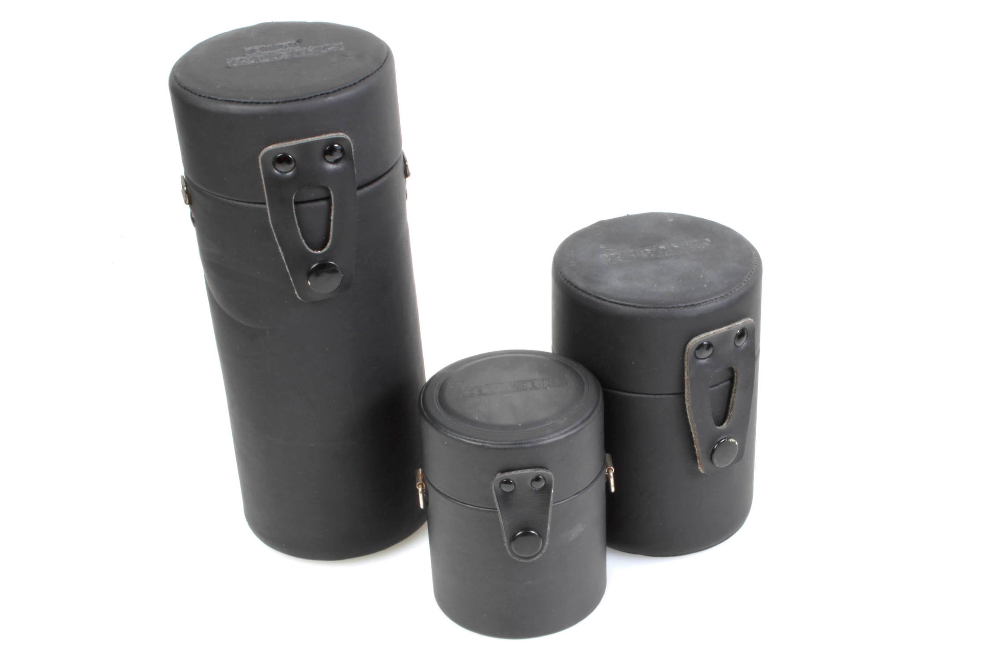 3.5 X 9, 3.5 X 5, 3 X 4 inch lens cases. Interiors are clean. in good cosmetic condition.