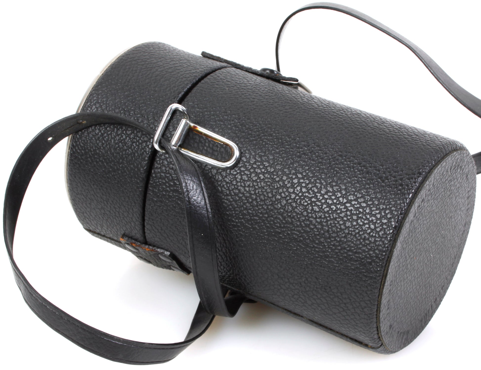 Good condition. This is a camera lens hard case. It has 5.5" inches inner depth and a 2.75" inner diameter. Has strap