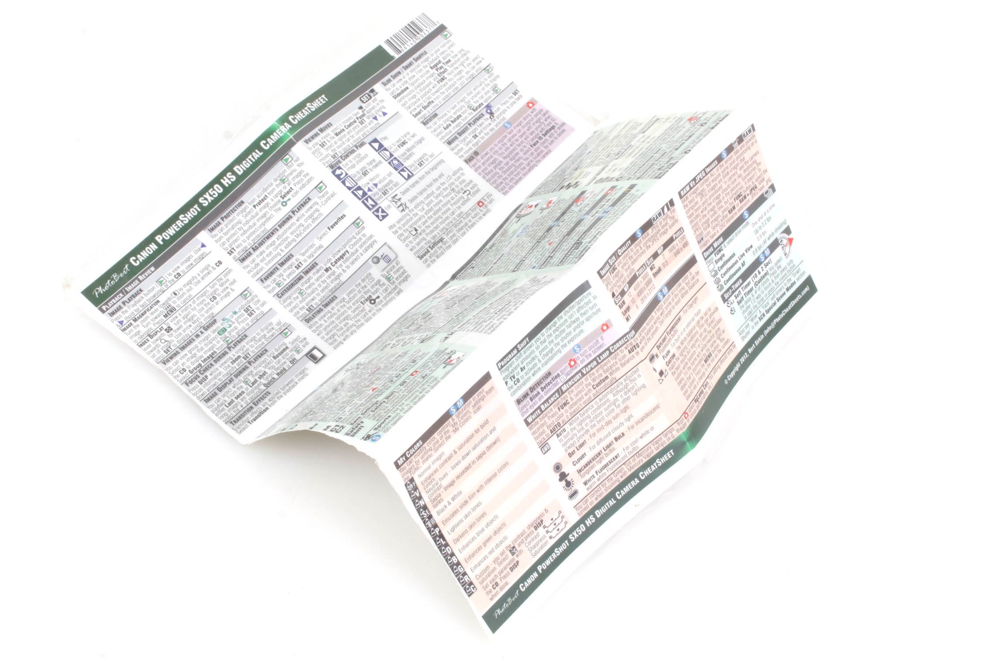 8.5 X 11 laminated sheet of camera tips and functions. A great resource for owners of the Canon Powershot SX50 HS camera.