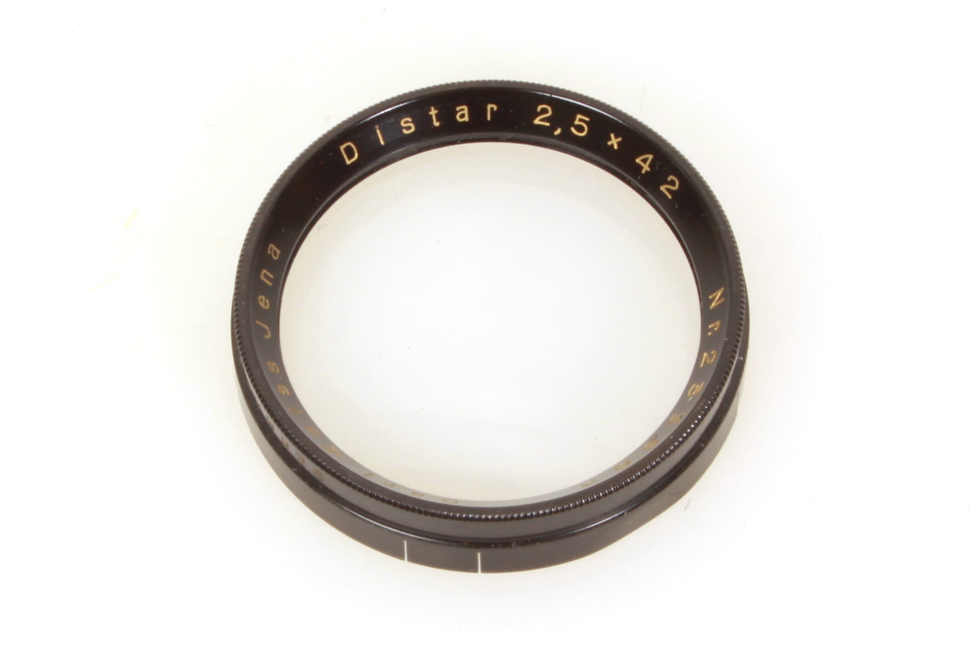 Carl Zeiss Jena 42mm Distar 2.5 x 42. In good vintage condition. There is a slight dent to the rim. Comes with case.
