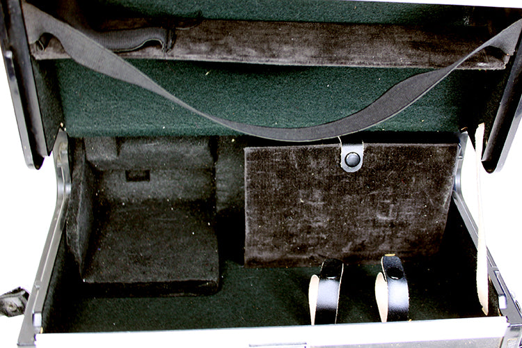 YASHICA HARD SHELL CAMERA CASE FOR ELECTRO 35. APPROXIMATE MEASUREMENTS: 11 1/2 X 8 3/4 X 4 5/8 INCHES. VARIOUS COMPARTMENTS INSIDE. IN VINTAGE USED CONDITION. SOME MARKS AND WEAR. THE STRAP HAS A STICKY RESIDUE. THE ELASTIC STRAP TO THE INTERIOR HAS DETERIORATED AND LOST ITS ELASTICITY. LOCKABLE CLASP BUT THERE IS NO KEY PRESENT.