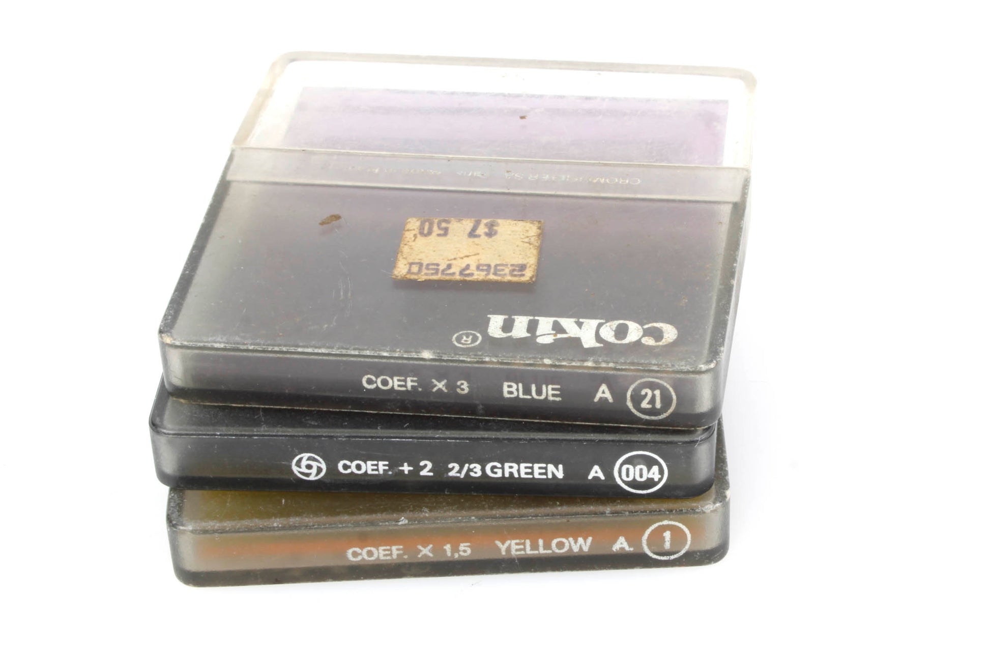 Cokin Filters (3) Coef. + 2 2/3 Green, Coef. X 1.5 Yellow, and Coef. X 3 Blue
