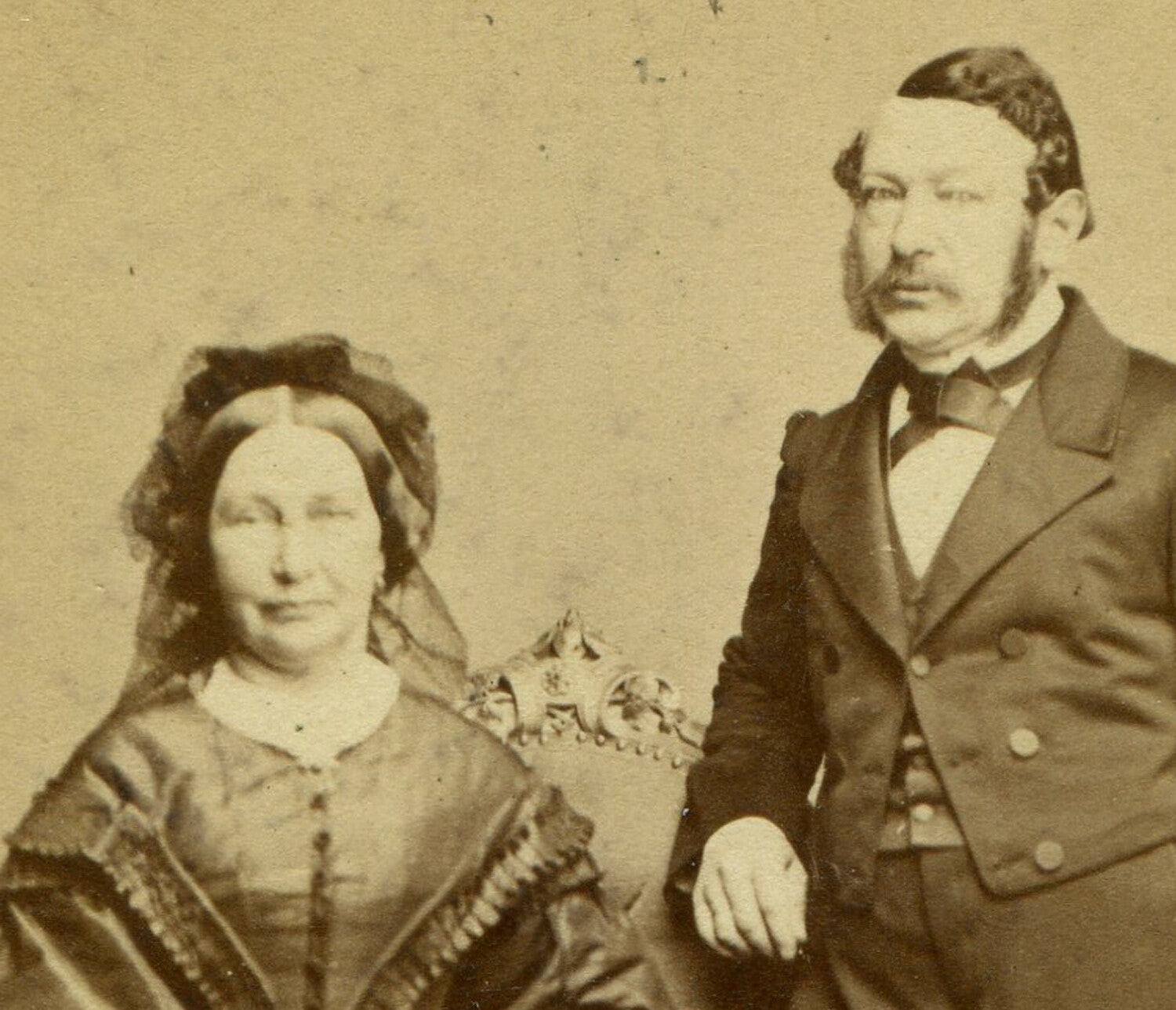 COUPLE POSED, DRUNK WOMAN HOLDING BOOK. CDV, 1864, WIEN, AUSTRIA. MAKER MARK ON CARD BACK. IMAGE AND CARD SHOW WEAR. This item is a guaranteed authentic photo as shown from the original time period. NOT a copy, an ORIGINAL OLD PHOTO.