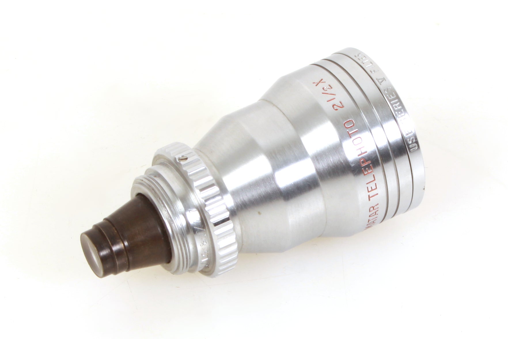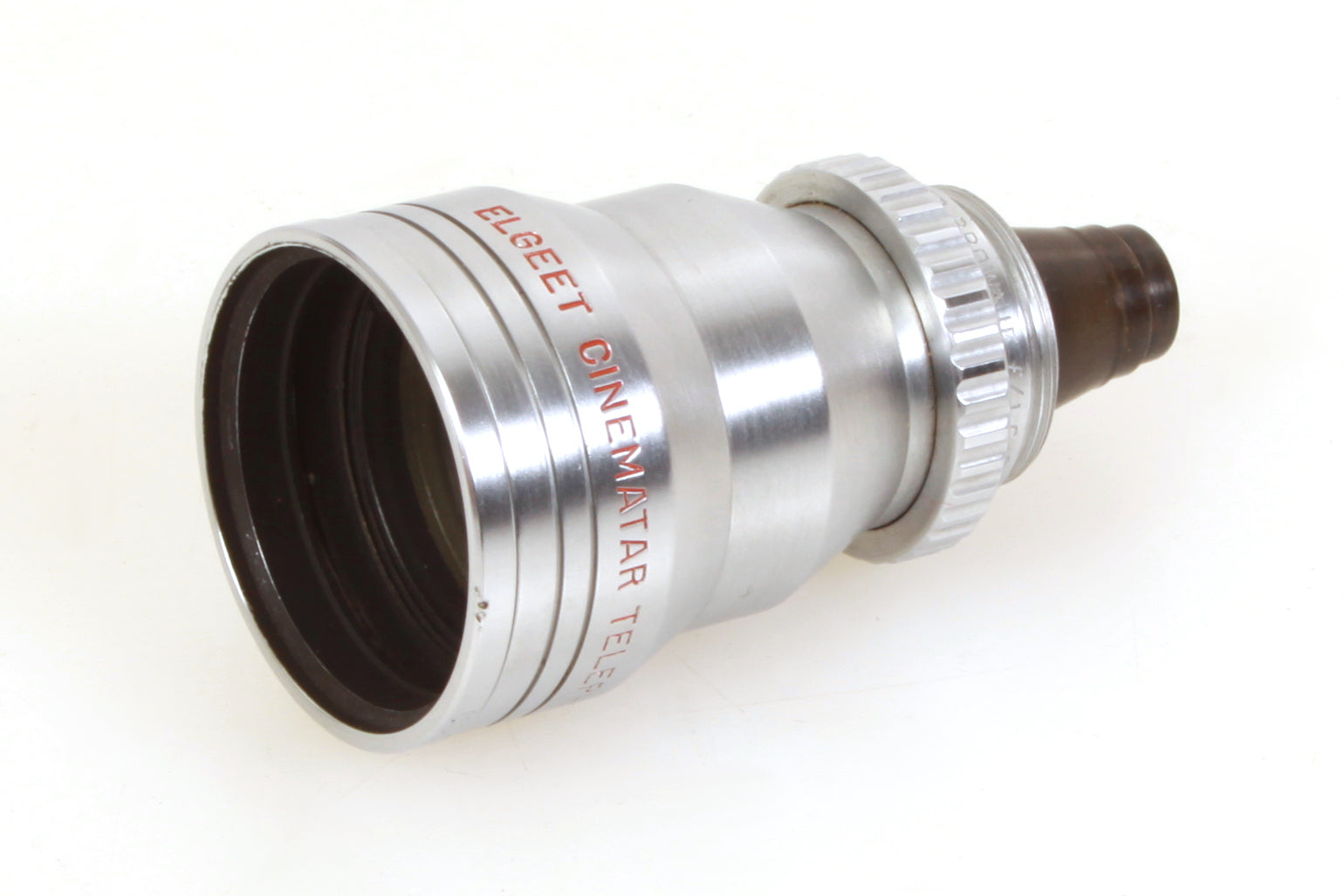 Elgeet Cinematar Telephoto Lens 2 1/2 X. There is some dust and haze present to the lens but no scratches. The barrel is in very good cosmetic condition with only light signs of use. Comes with original box.