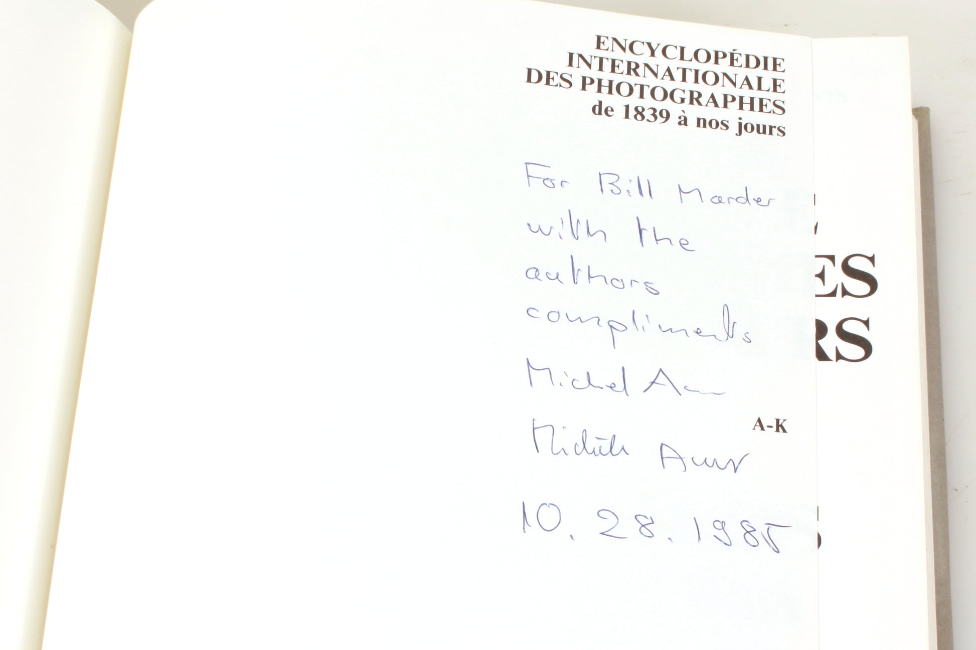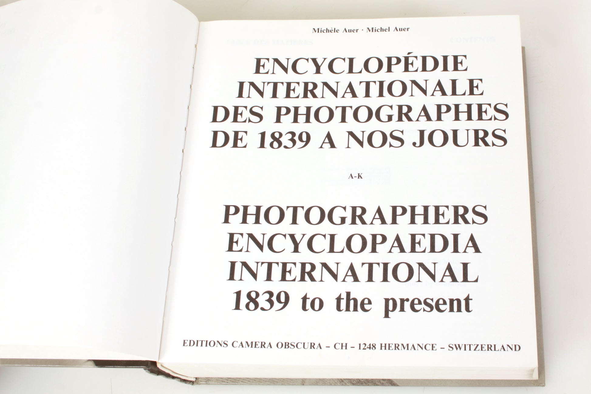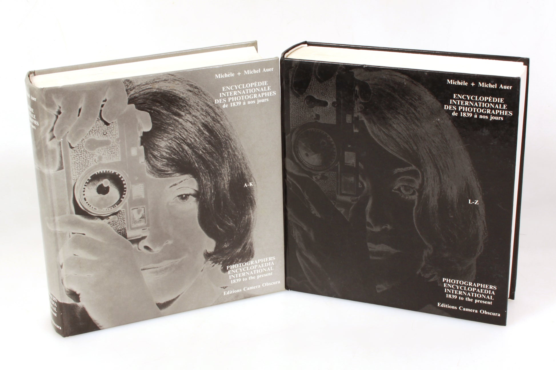 Encylopedie Internationale des Photographes de 1839 a Nos Jours (Photographers Encylopedia International 1839 to the Present) A-K & L-Z by Michele and Michel Auer (set of two books). The A-K volume is signed by the authors. In good condition with general signs of use but no obvious major damage. Some handwriting in pencil to the front endpaper of each. Some marks to the page edges of the A-K volume.
