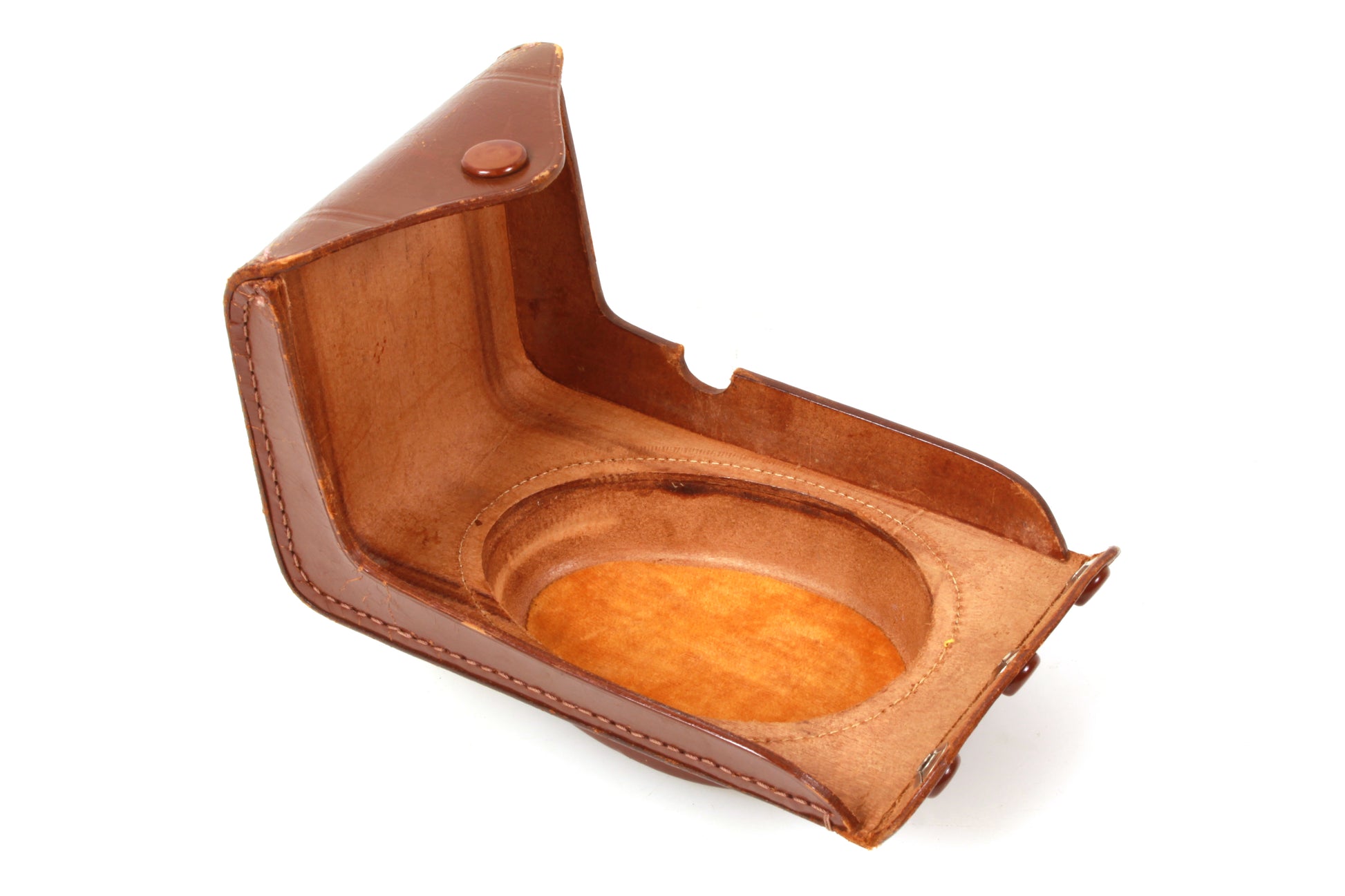 Firstflex brown leather case with strap for 6x6 camera. Overall in good vintage condition with some wear and tear.