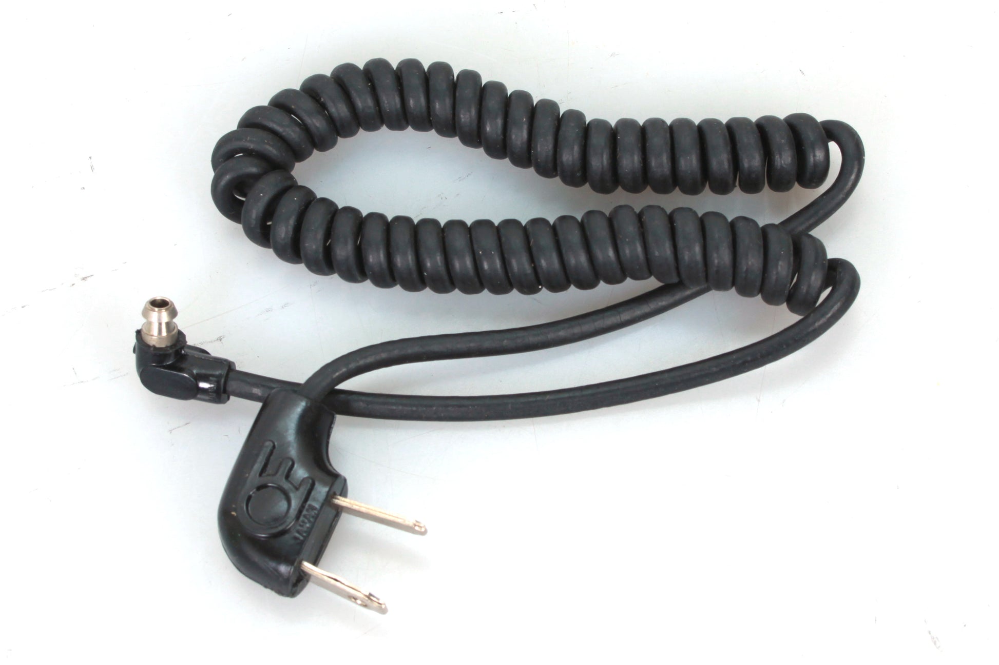 COILED FLASH CORD AC TO LOCKING PC. MEASURES APPROXIMATELY 18 INCHES LONG UNSTRETCHED. NEW OLD STOCK.