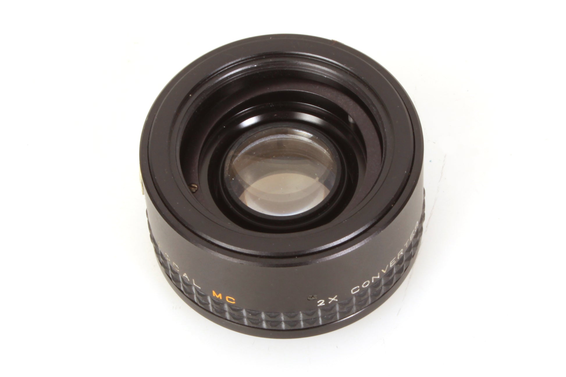 Focal MC 2x converter P42 screw mount. There is some dust and haze present to the lens but no scratches. The barrel is in good cosmetic condition with some general signs of use. Comes with case.
