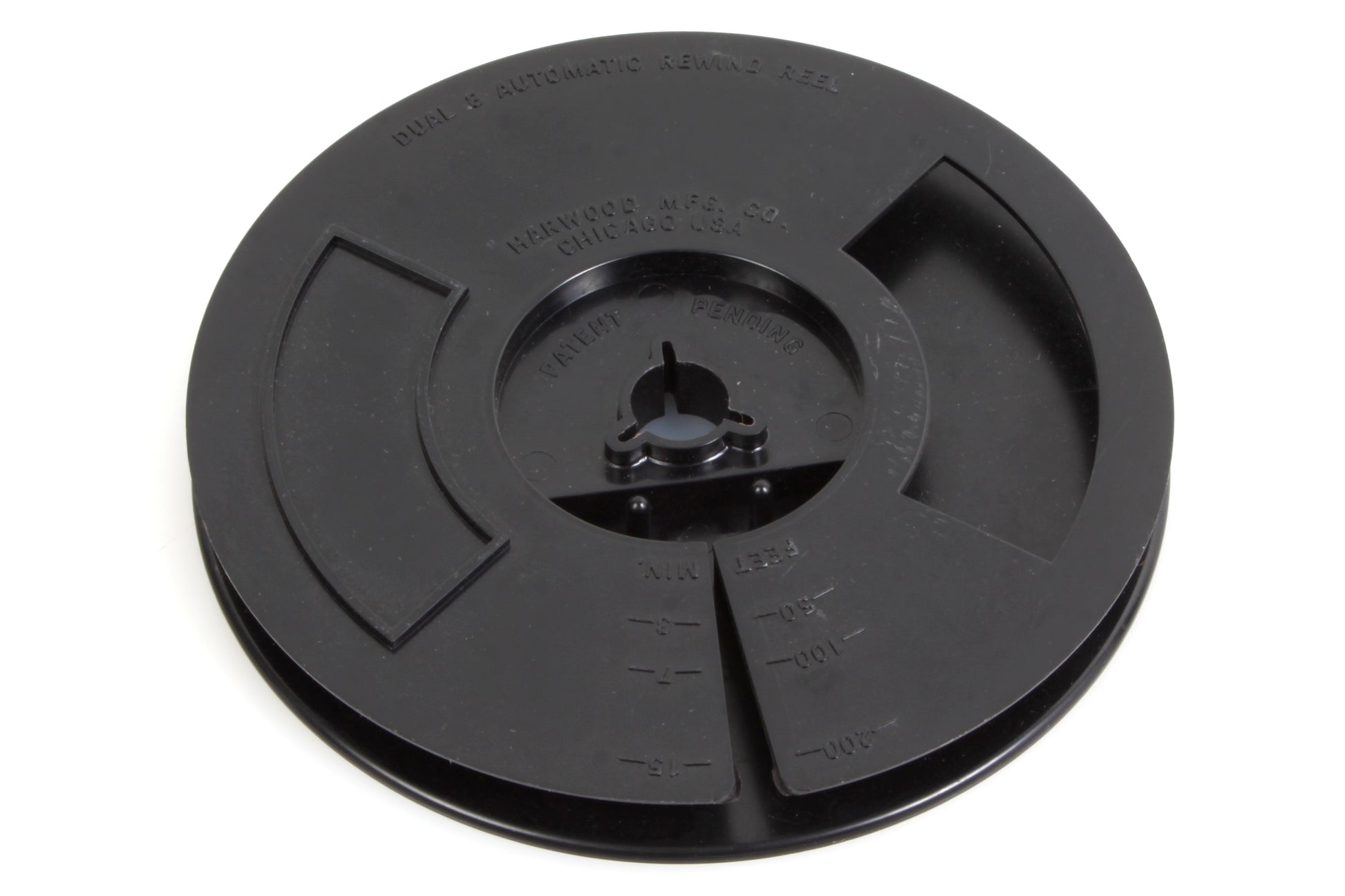 Harwood Dual 8 plastic reel to hold 200ft of film. Measures approximately 5 inches diameter and 1/2 inch deep. In good vintage condition with some scratches and general signs of use.