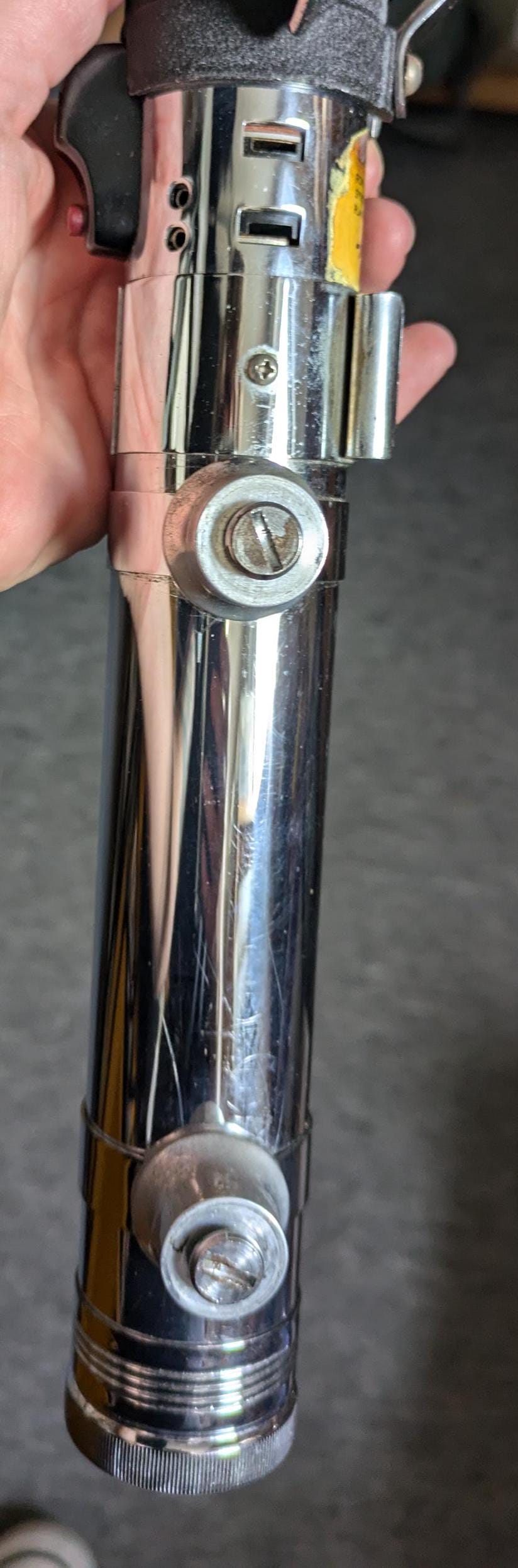 ITEM IN GREAT COSMETIC CONDITION. NO SEVERE WEAR TO OUTSIDE OF UNIT. INSIDE SHAFT MODERATE AMOUNT OF CORROSION, HEAD RAISES & LOWERS EASILY. SHAFTS FROM GRAFLIGHTS USED TO CREATE LIGHTSABERS. ALSO INCLUDES HEAD COVER, CABLES & 2 SOCKET ADAPTERS. ITEM HAS NOT BEEN TESTED, SOLD AS IS.