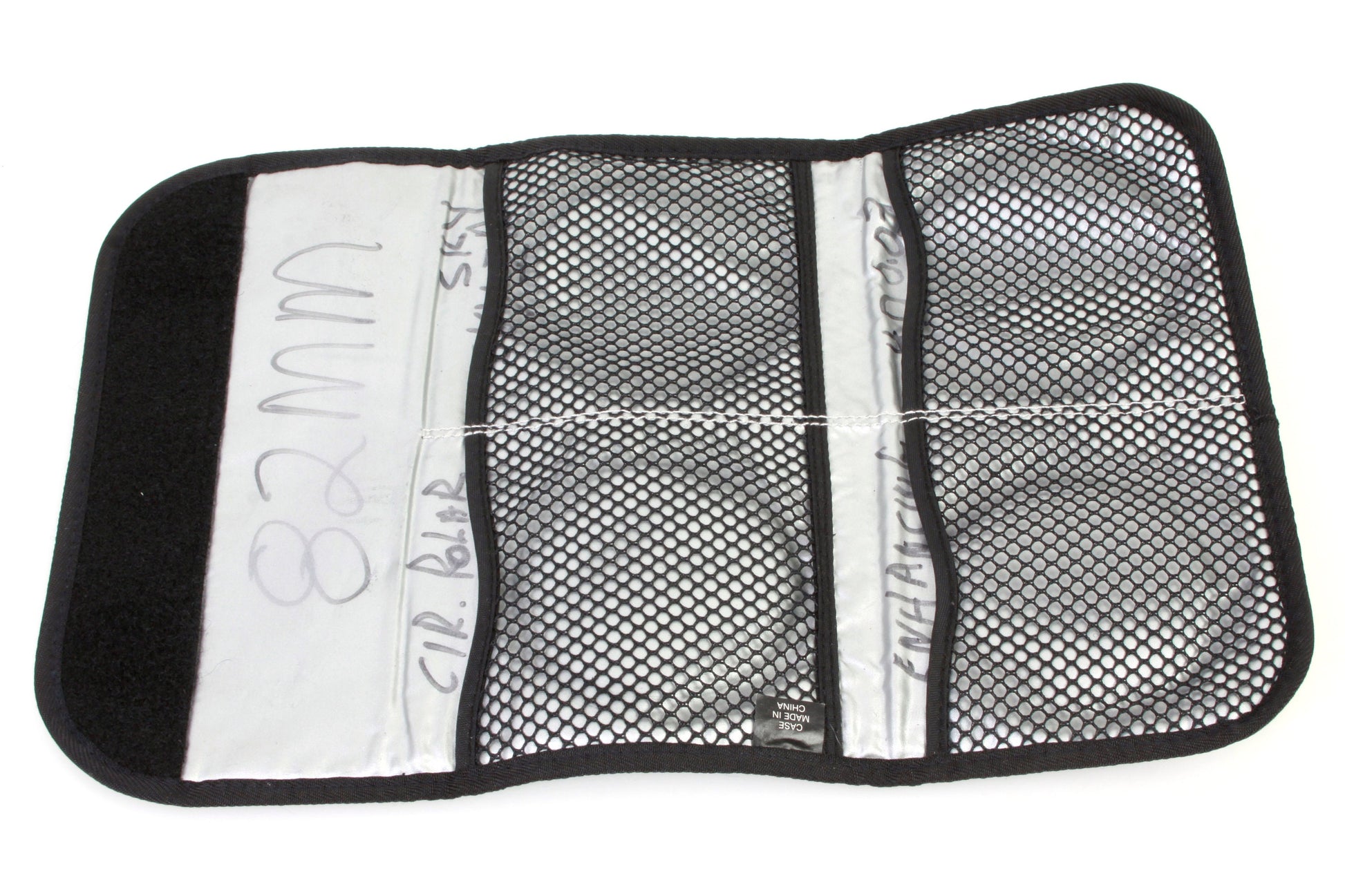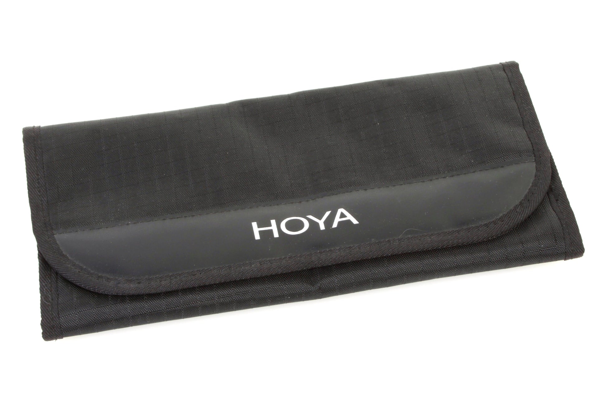 Hoya filter case with four pouches inside. Overall measurements approximately 9 x 4.5 inches and each pouch fits up to 4 inches width. In good condition with some handwriting inside.