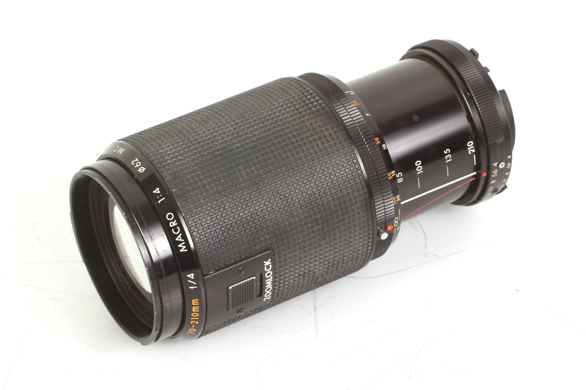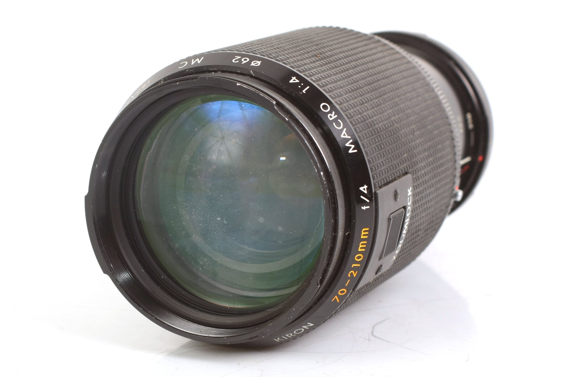 KIRON 70-210MM F/4 MACRO 1:4 MC LENS. SOLD AS IS - FOR PARTS. THERE IS SOME DUST AND HAZE PRESENT TO THE LENS BUT NO SCRATCHES. COSMETICALLY THE BARREL HAS SOME GENERAL WEAR AND TEAR, SOME WHITENING TO THE RUBBER.