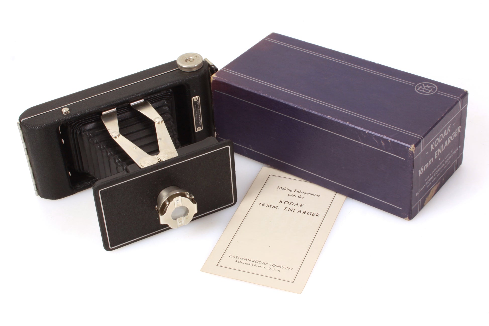 Kodak 16mm Enlarger. New old stock in original box with instructions. Cosmetically it is in like new condition. The shutter seems to be functioning although it has not been tested with film or for accuracy.