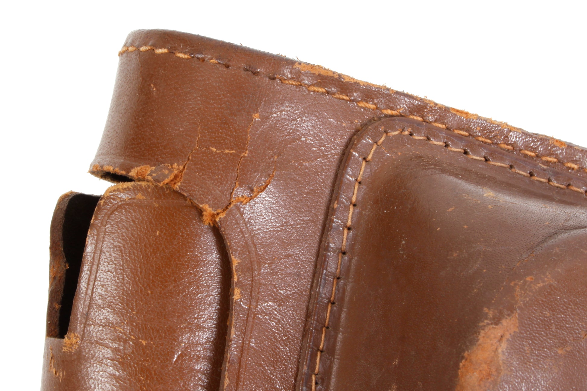 Brown leather field case for Kodak 35 camera. This is a vintage item and there are some areas of wear and some cracks/tears. Sold as is.