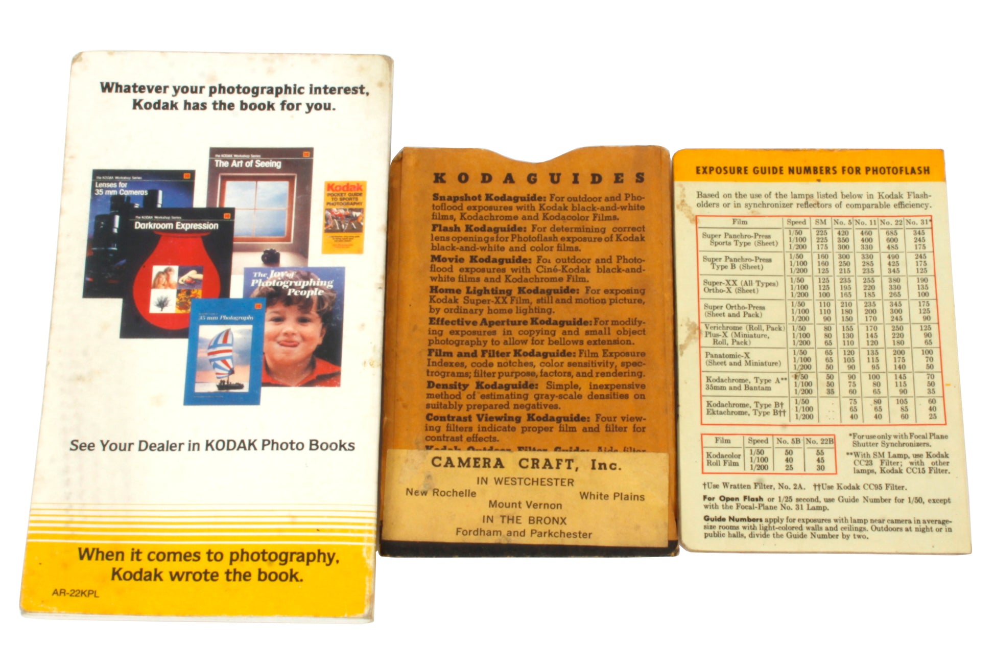 Kodak Pocket Guide to 35mm Photography. ISBN 0-671-46833-2. Copyright 1983. 112 pages. In good vintage condition with some marks to the cover but the contents are still readable. Comes with Flash Kodaguide which is in good vintage condition with marks and creasing but still readable.