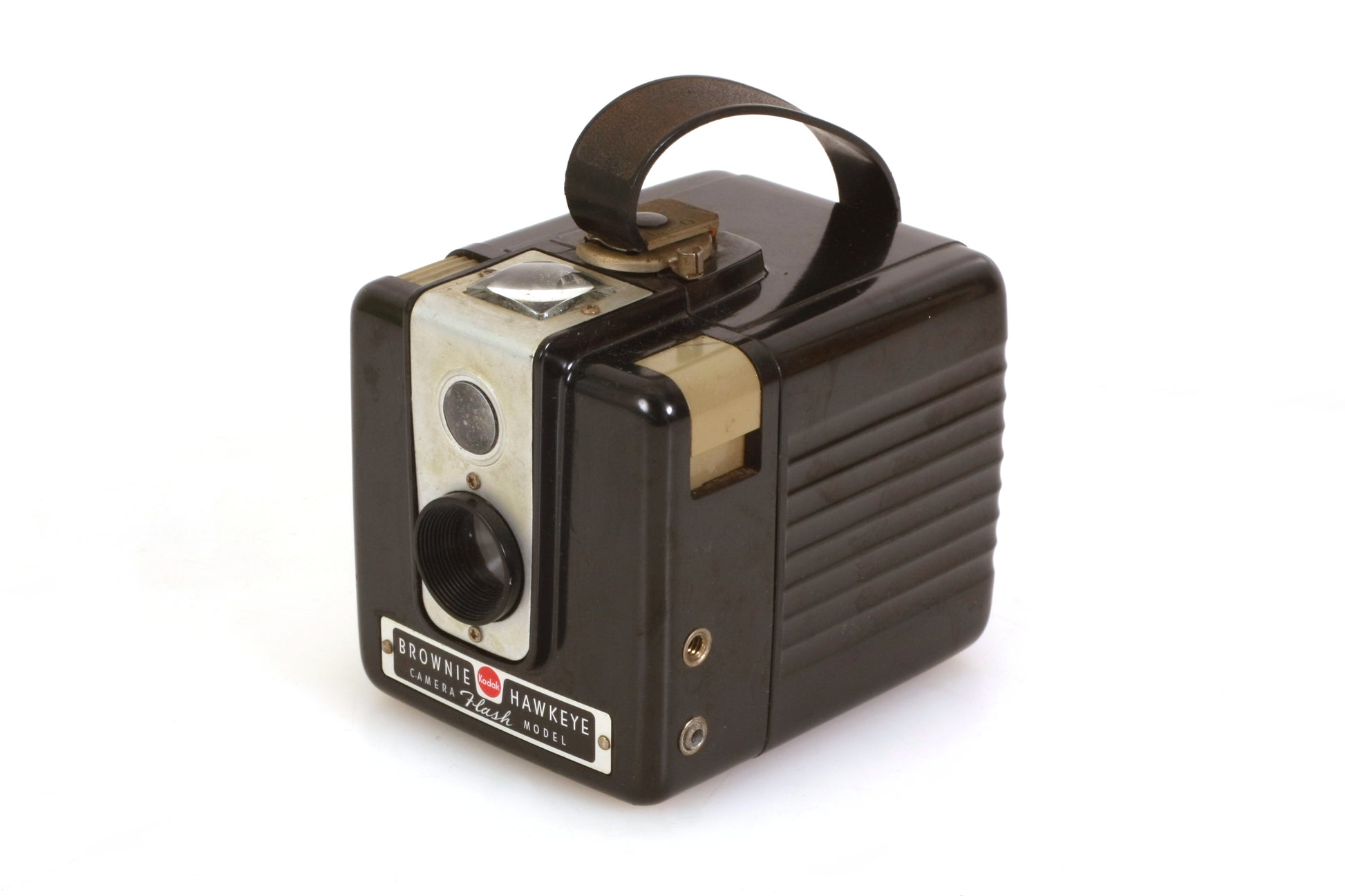 KODAK BROWNIE HAWKEYE CAMERA FLASH MODEL. THE SHUTTER SEEMS TO FIRE FINE ALTHOUGH IT HAS NOT BEEN TESTED WITH FILM OR FOR ACCURACY. SOLD AS IS. THERE LOOKS TO BE SOME DUST AND HAZE PRESENT TO THE LENS BUT NO VISIBLE SCRATCHES. SOME DUST PRESENT TO THE VIEWFINDER. THE CAMERA BODY HAS SOME MARKS AND SCRATCHES AND THERE IS SOME RUST TO SOME OF THE METAL PARTS. THE FLASH HAS NOT BEEN TESTED SO IT IS SOLD AS IS. COSMETICALLY IT HAS SOME MARKS AND SCRATCHES, MOST OF THE SILVER FINISH HAS COME OFF, AND THERE IS SOME CORROSION TO SOME OF THE METAL PARTS.