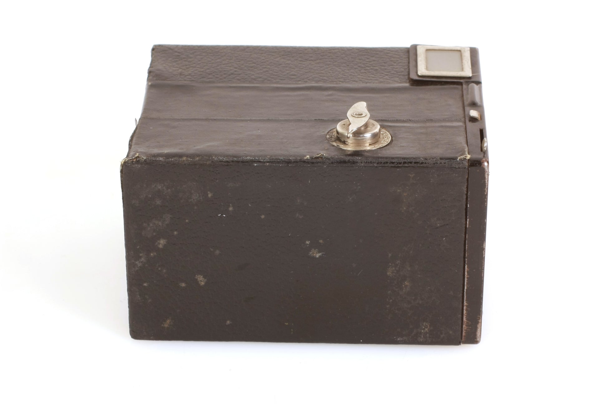 KODAK BROWNIE JUNIOR SIX-20 CAMERA. THE SHUTTER SEEMS TO FIRE FINE, ALTHOUGH IT HAS NOT BEEN TESTED WITH FILM OR FOR ACCURACY. COSMETICALLY IT HAS SOME WEAR AND TEAR. IT LOOKS LIKE SOME OF THE EXTERIOR HAS BEEN REPAIRED WITH BLACK TAPE. THERE IS SOME DUST AND HAZE PRESENT TO THE LENS BUT NO SCRATCHES. THE VIEWFINDERS ARE HAZY. SOLD AS IS.