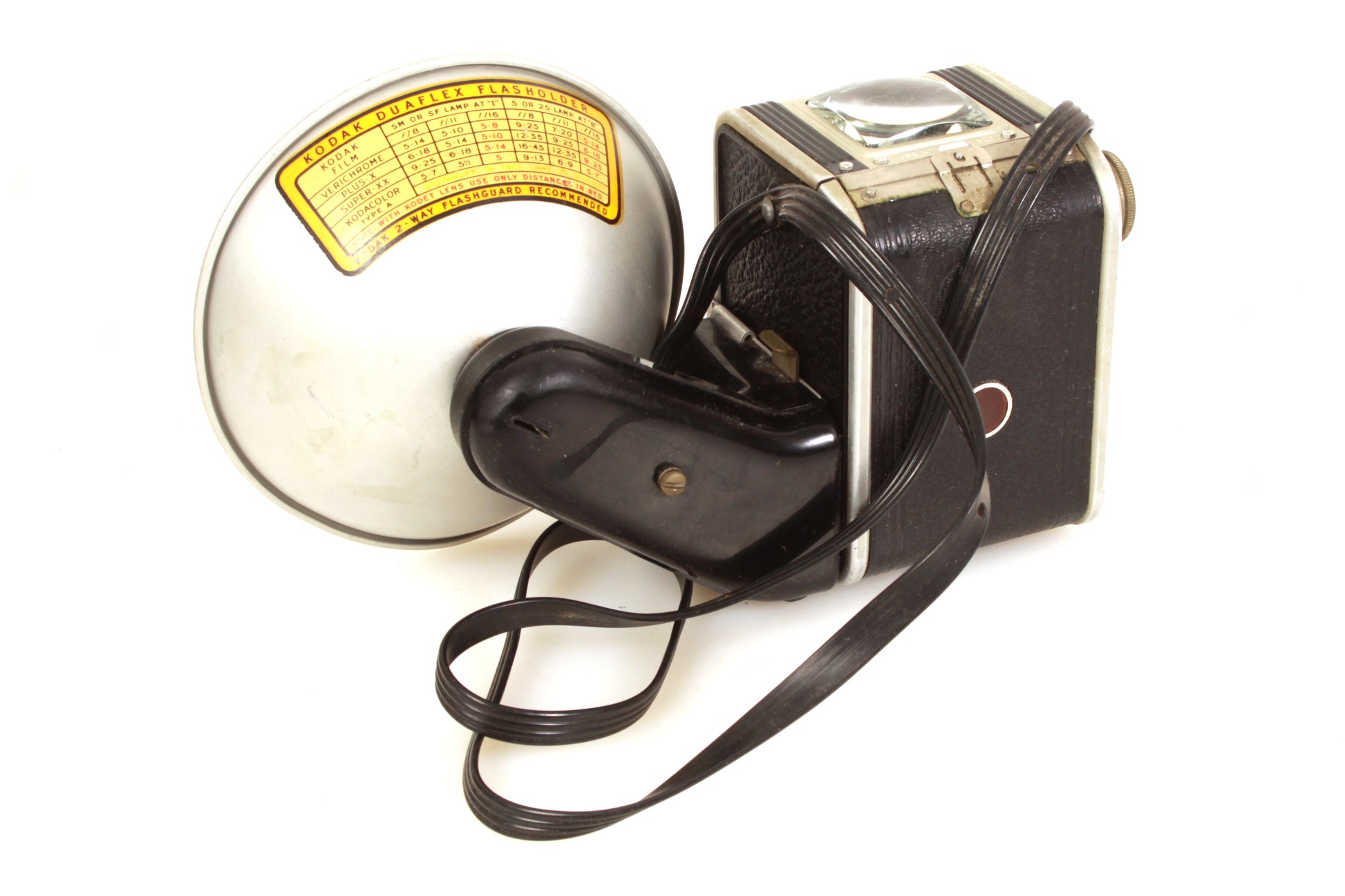 Kodak Duaflex Art Deco Camera w/ Flash, Case & Manual