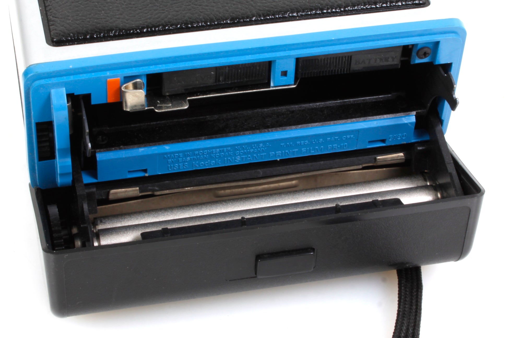 Kodak EK6 instant camera. It looks to be in working order, the shutter is firing fine, although it has not been tested with film or for accuracy. Cosmetically it is in good vintage condition with some general signs of use. A little haze to the viewfinder but no cracks. There looks to be some dust present to the lens but no haze, fungus or scratches. Comes with its original box and manual.