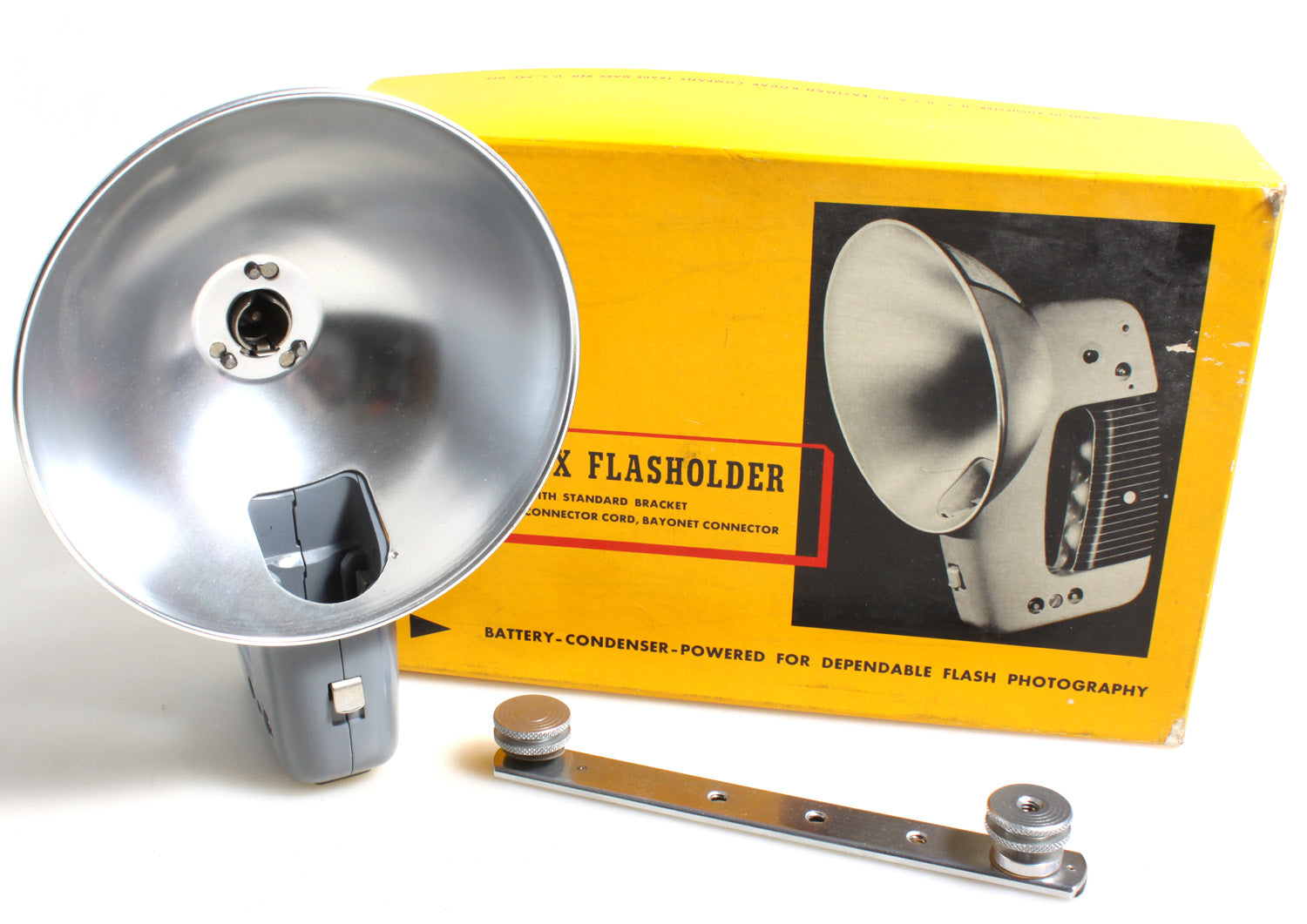 Kodak Ektalux Flashholder with Bracket, New in Box. New old stock in great shape without wear but it is missing the connector cord. Sold as is.