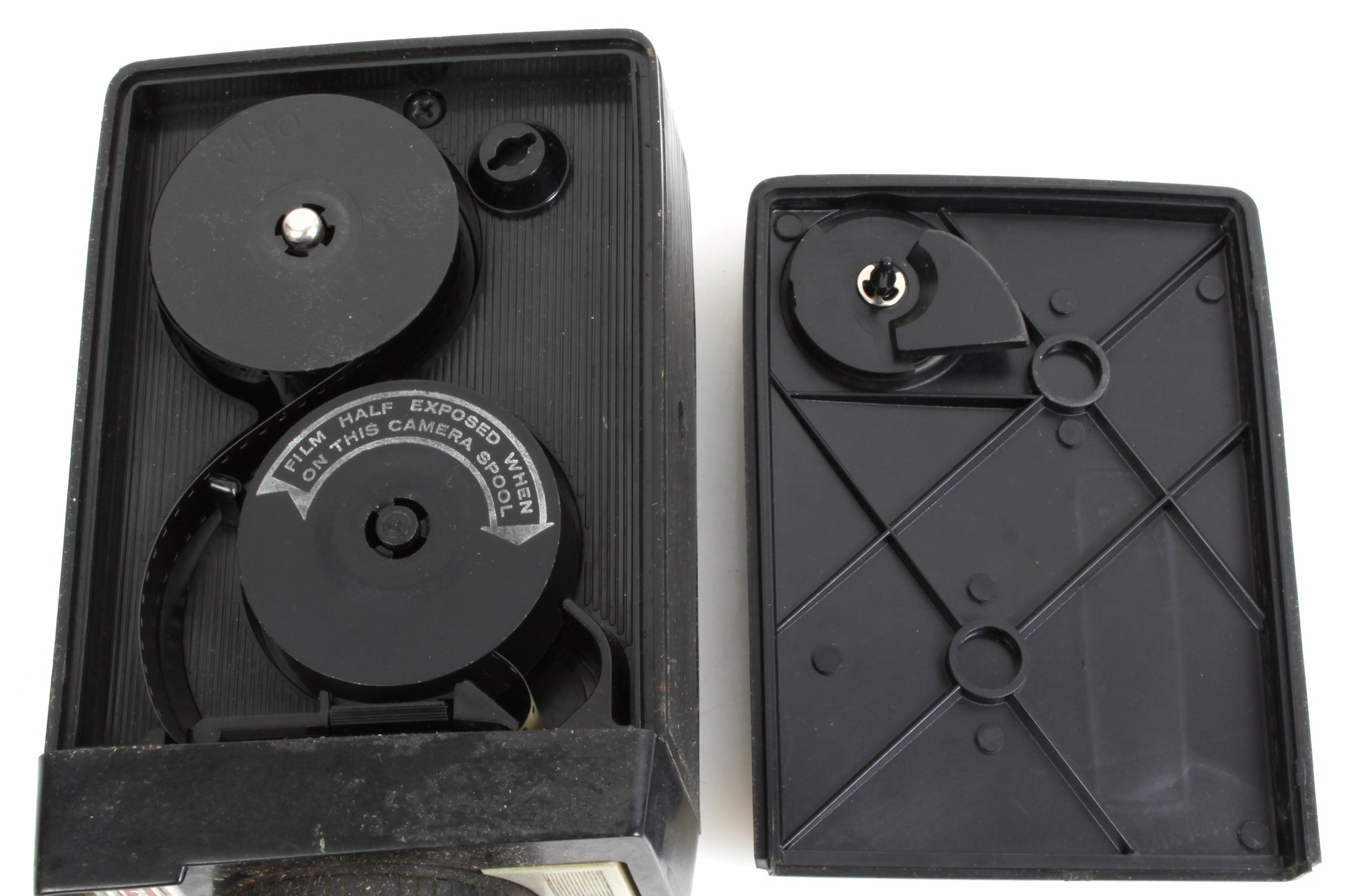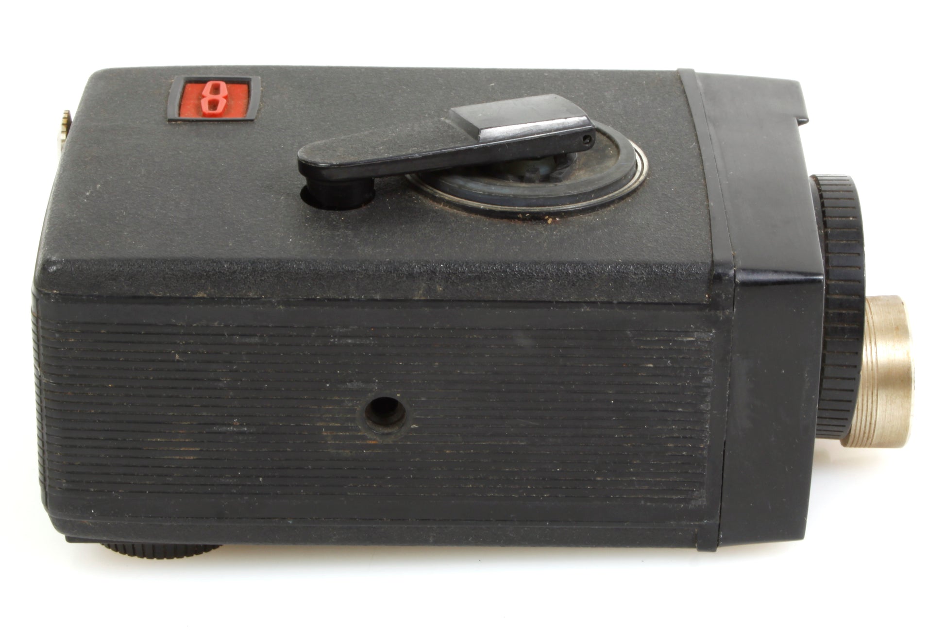 Kodak Hawkeye 8 movie camera. The motor seems to be functioning, although it has not been tested with film or for accuracy. Cosmetically it has some marks and general signs of age and use. Some haze and scratches present to the viewfinder. Sold as is.