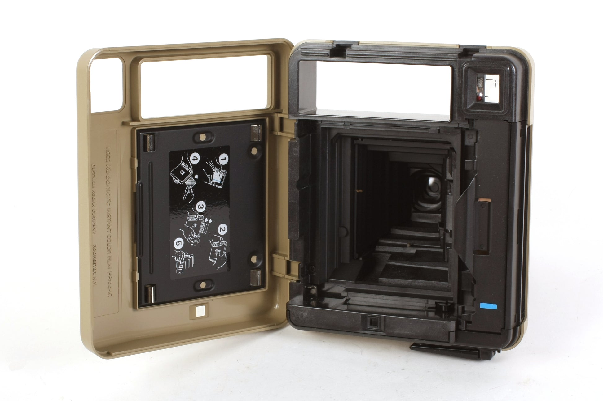 KODAMATIC PLEASER II INSTANT CAMERA. IT DOES NOT SEEM TO BE WORKING. THERE IS SOME CORROSION IN THE BATTERY COMPARTMENT WHICH MIGHT BE THE REASON. COSMETICALLY THE CAMERA BODY IS IN VERY GOOD VINTAGE CONDITION WITH ONLY LIGHT SIGNS OF USE. THE LENS AND VIEWFINDER LOOK TO BE CLEAR OF DUST, HAZE AND SCRATCHES. COMES WITH ORIGINAL BOX.