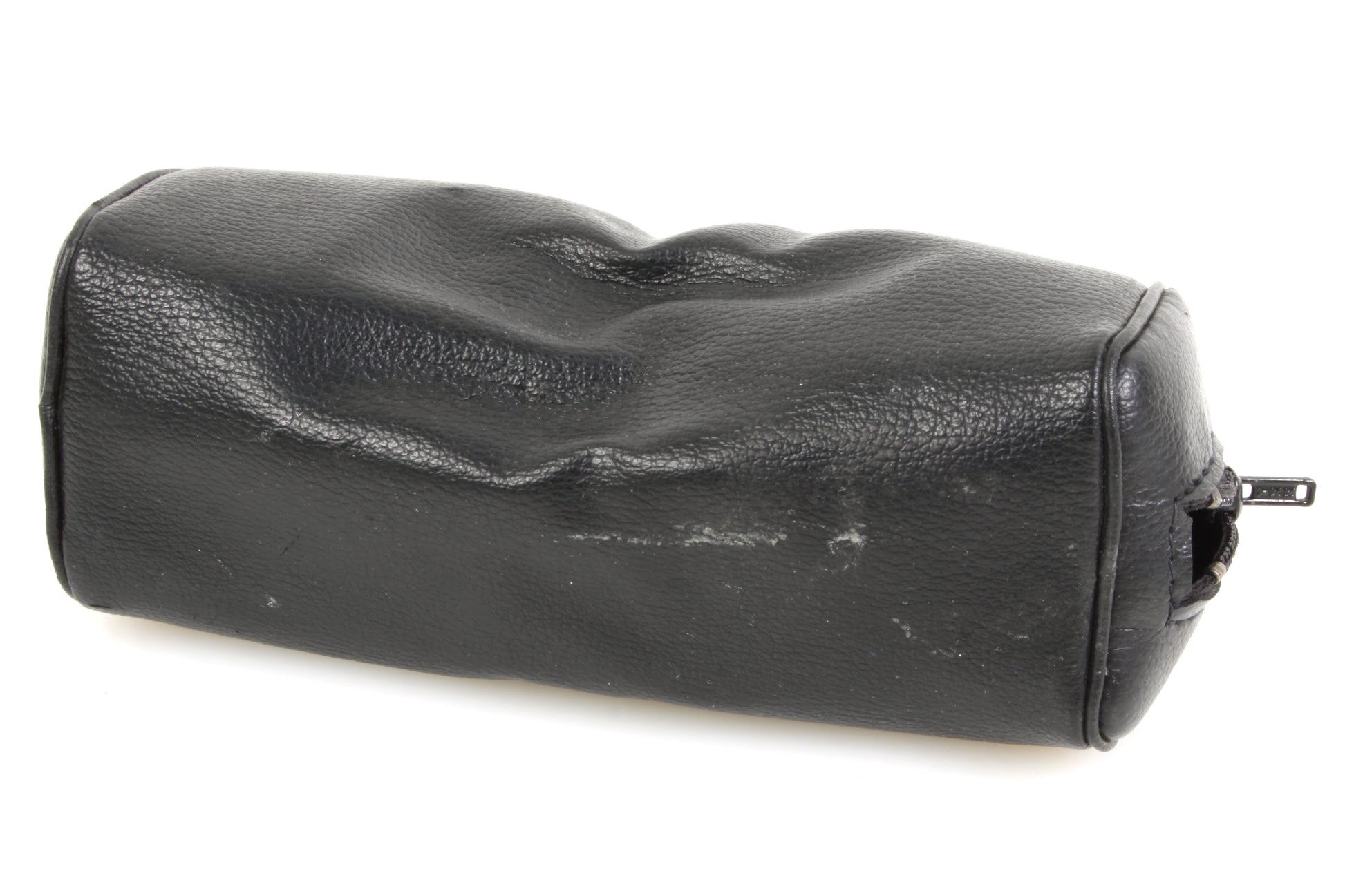 Konica black vinyl case - holds four rolls of 35mm film. Comes with four plastic film canisters. Measures approximately 5.5 x 2 x 2 inches. In good vintage condition with some marks and wear.