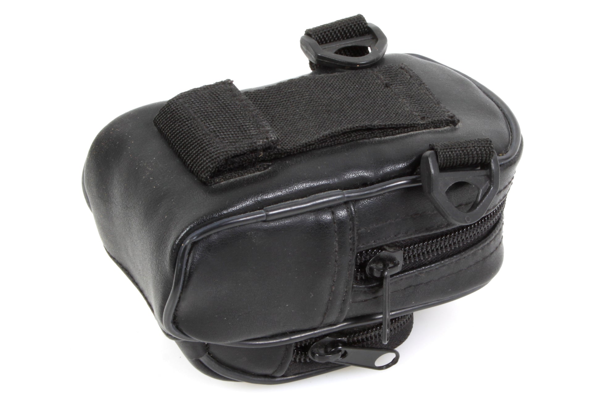M Gear black leather camera case. Exterior measurements approximately 5 x 2 3/4 x 3 inches. 4 1/2 x 2 1/4 x 1 1/2 inches. Comes with detachable shoulder strap. In very good vintage condition with some minor marks and general signs of use.