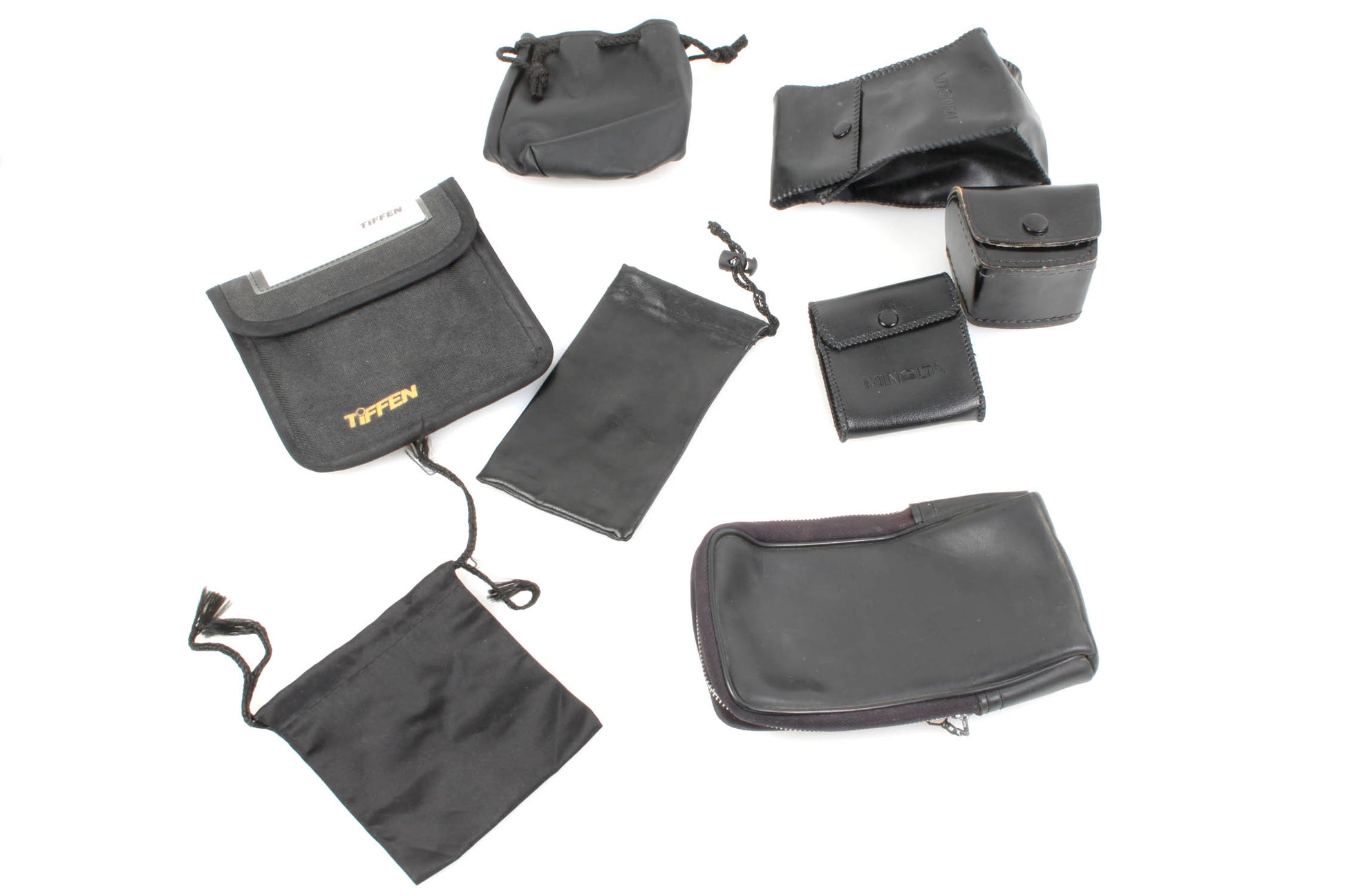 Lot of 8 black bags and pouches for small cameras and lenses. Great value! All bags are in good shape.
