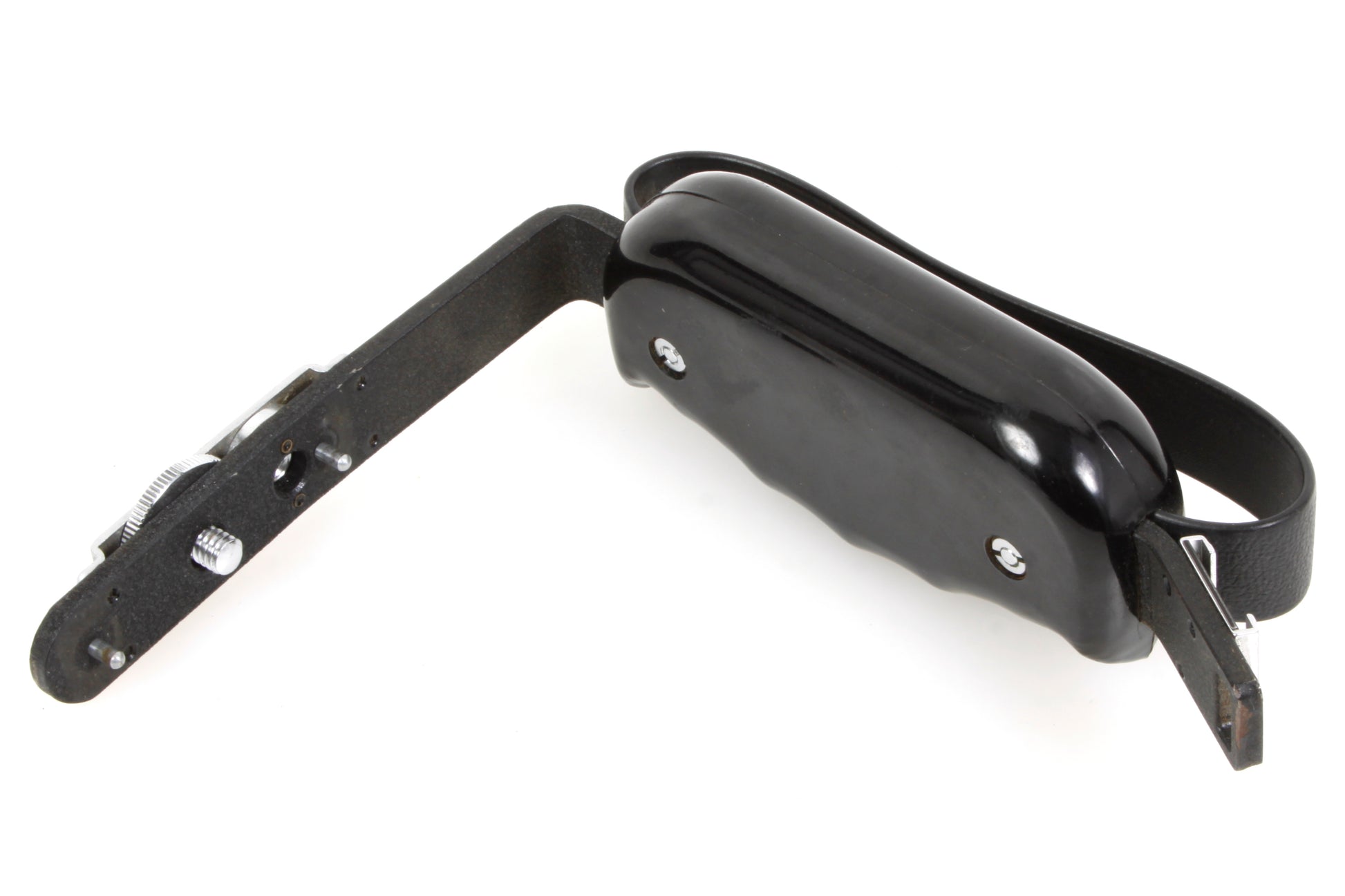 Left-handed Mamiya TLR Camera Grip / Flash Bracket for C3 C33 C330 etc. Overall measurements approximately 5 inches wide and 6 inches tall. In very good vintage condition with some scratches and general signs of use.