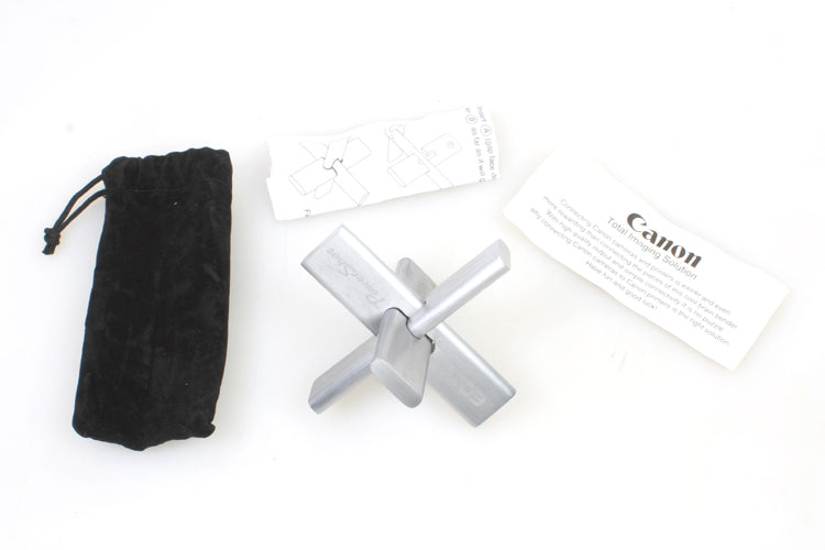 CANON PROMOTIONAL METAL PUZZLE. FEATURES LOGOS FOR CANON TOTAL IMAGING SOLUTION, EOS, POWERSHOT, PIXMA, IMAGEPROGRAF. EACH METAL BAR MEASURES APPROXIMATELY 1 X 4 X 5/16 INCHES. IN VERY GOOD CONDITION. SOME MARKS AND SCRATCHES. COMES WITH INSTRUCTIONS AND BLACK DRAWSTRING POUCH.