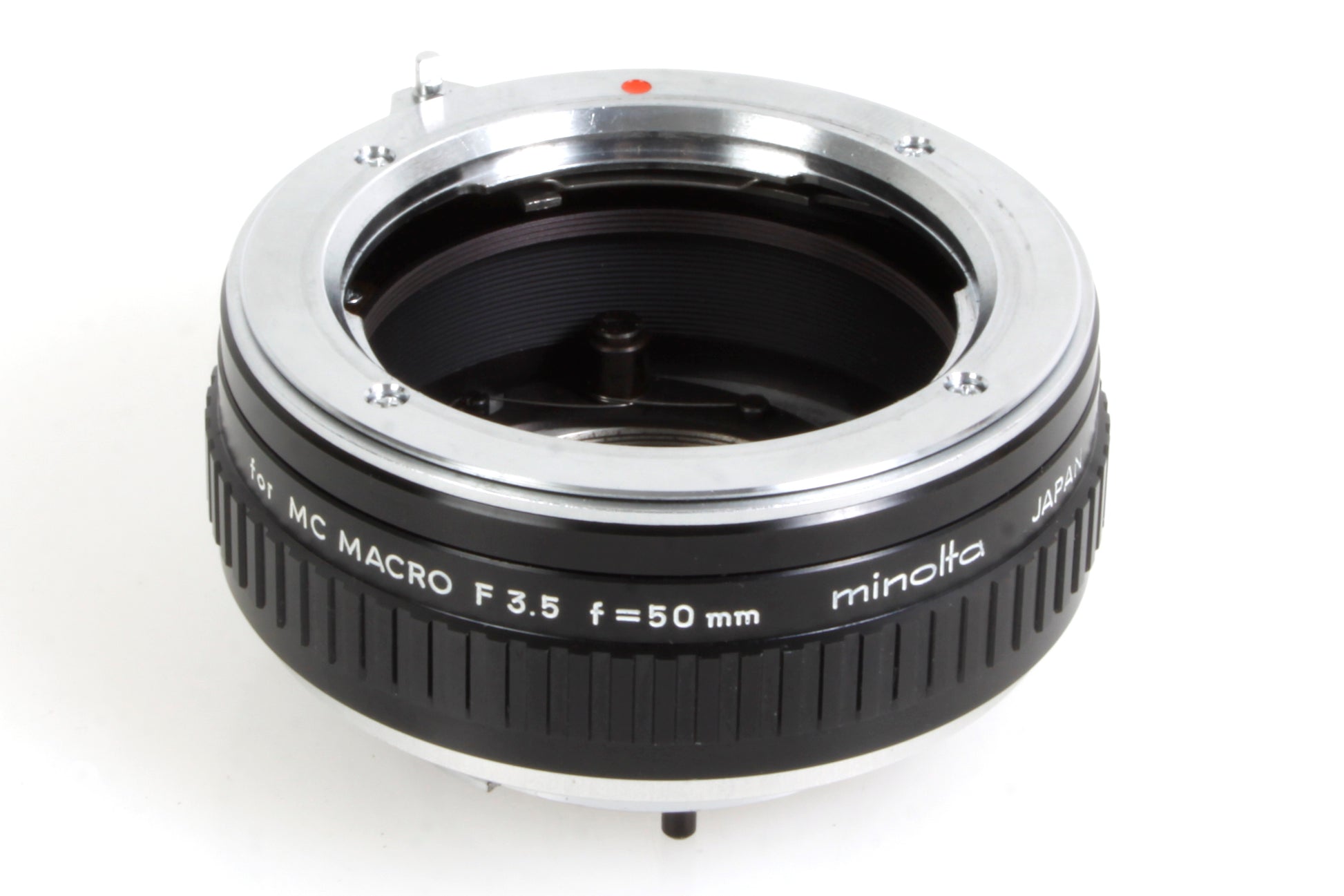 Minolta converter for MC Macro F3.5 f=50mm. In very good vintage condition with only light signs of use.