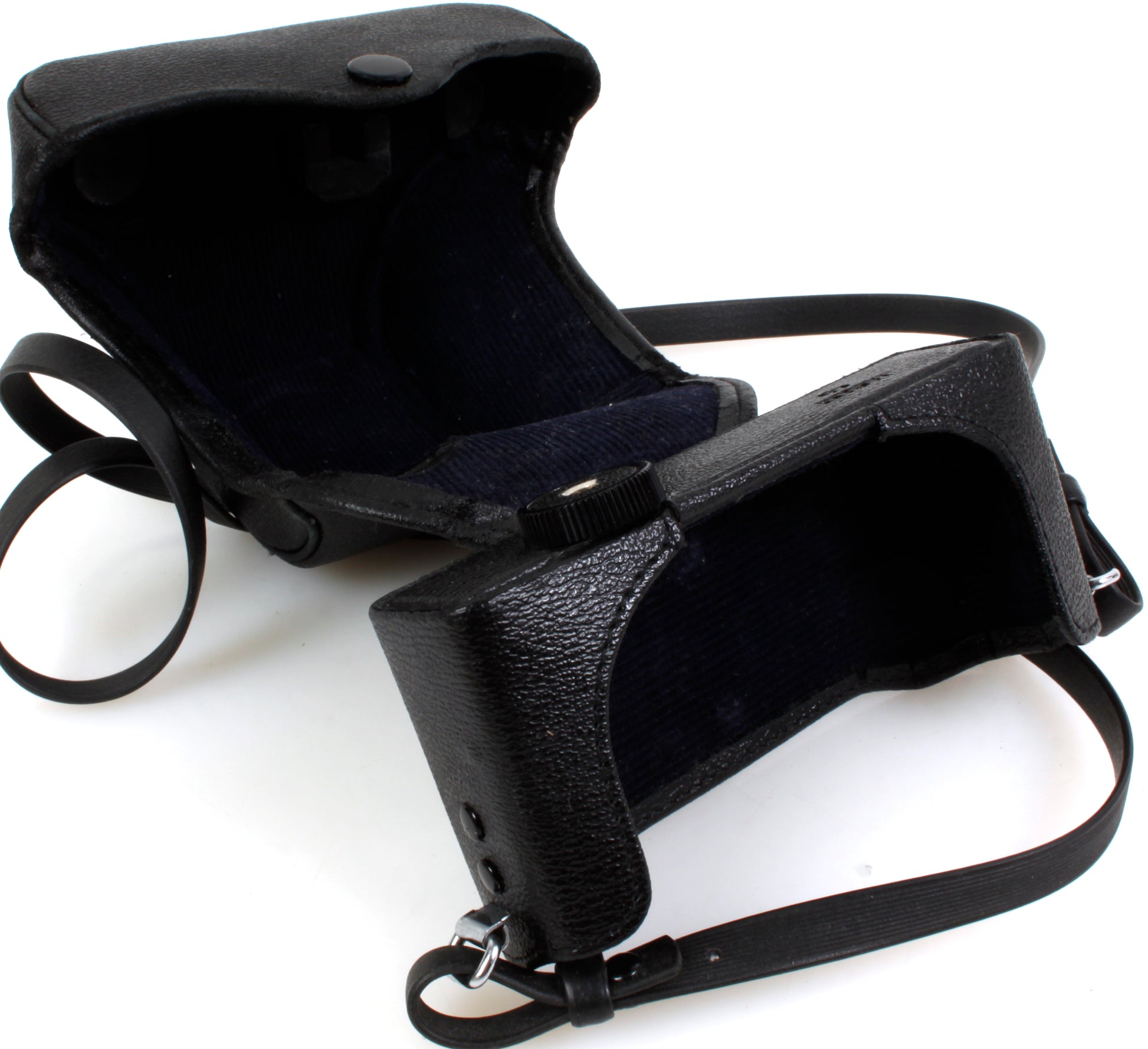 Very good condition. This is a camera case for a Minolta Hi Matic camera with an adjustable strap