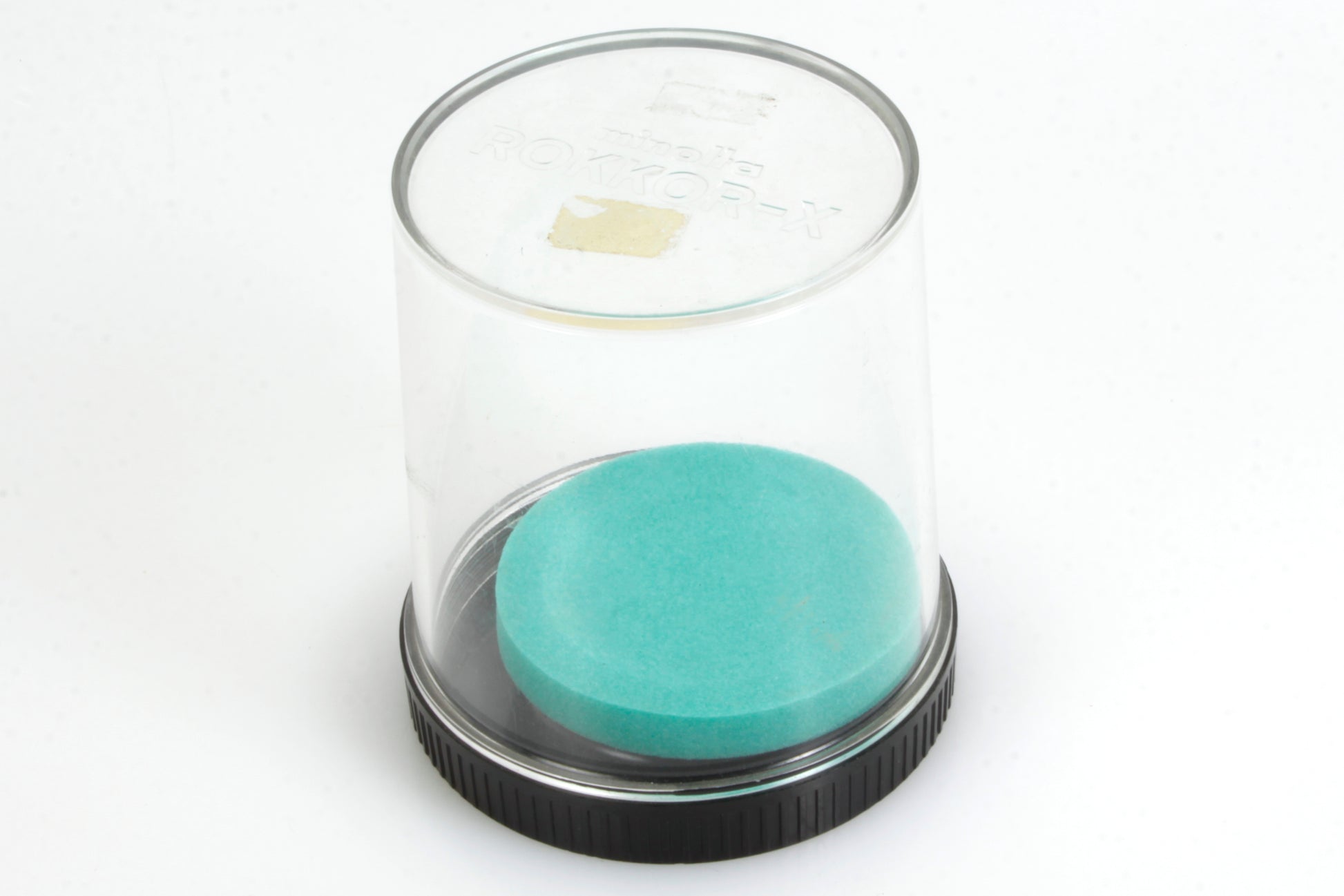 Minolta Rokkor-X Bubble Case for 135mm, 200mm lens. Overall measurements approximately 4 inches diameter and 4.5 inches tall. In very good vintage condition with some scratches and scuffs.