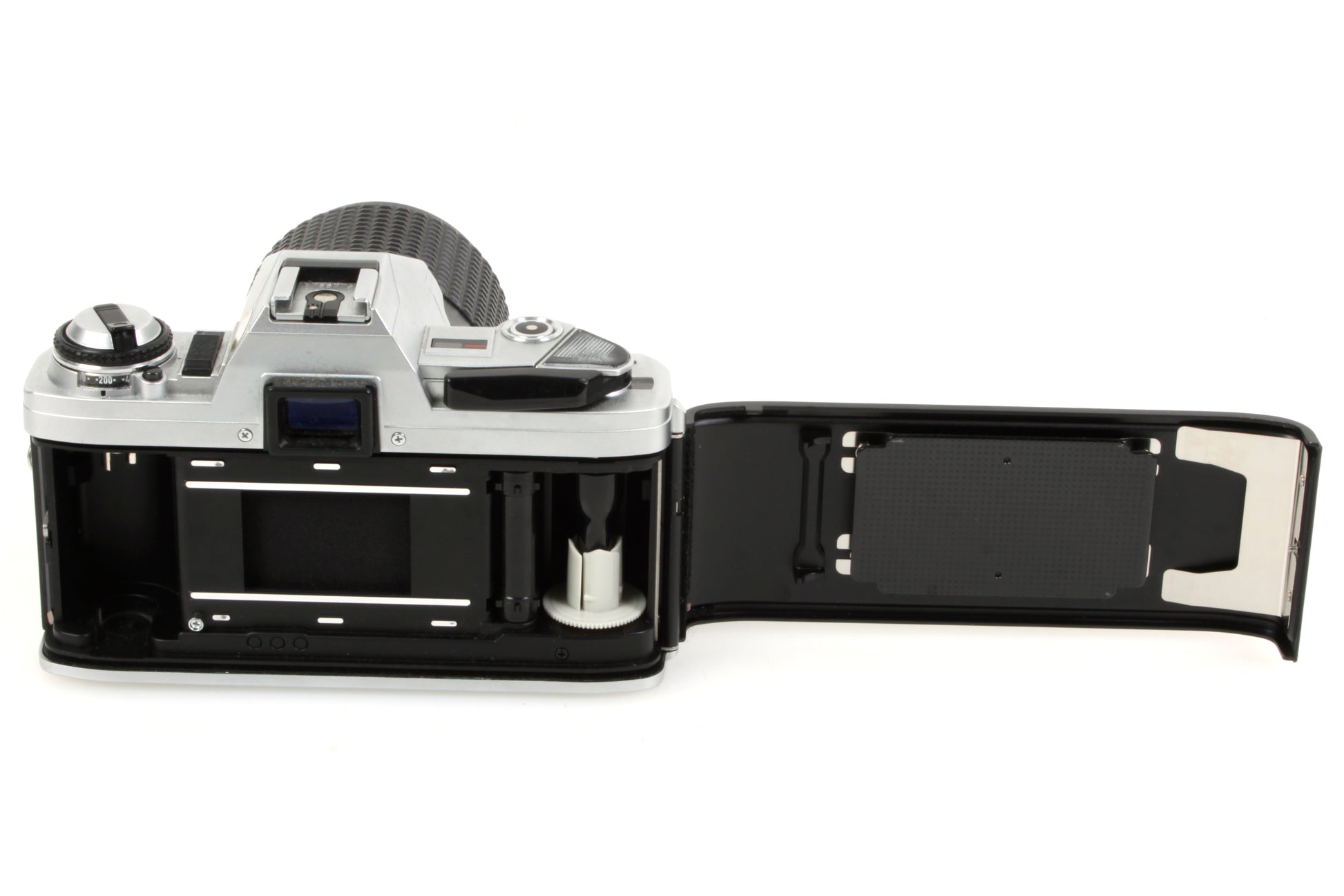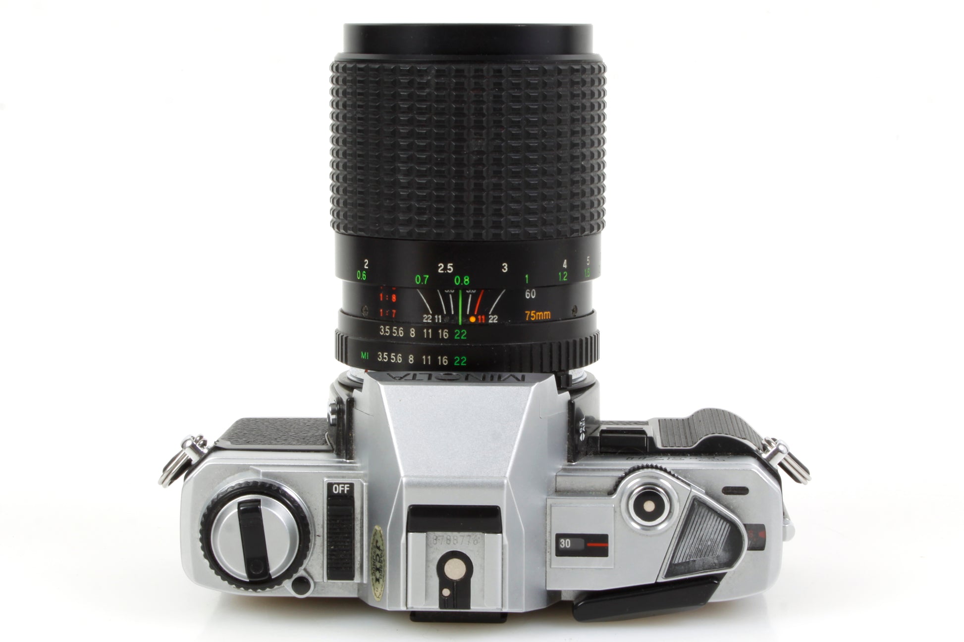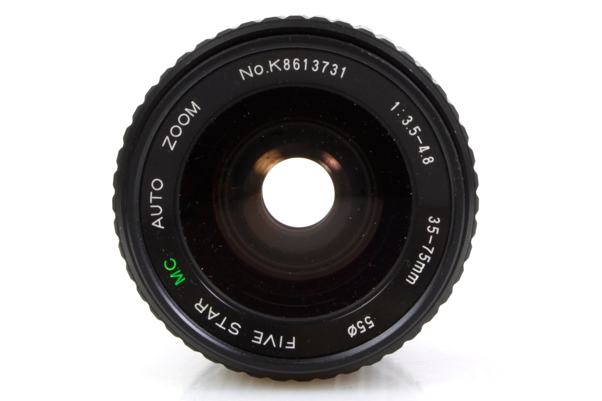 Minolta X-370 camera body with Five Star 35-75mm 1:3.5-4.8 lens. In working order, although it has not been tested with film or for accuracy. Light meter is working. Cosmetically it is in good vintage condition with some general signs of use but no obvious major damage. The viewfinder is clear of haze and cracks. There is some dust and haze present to the lens but no fungus or scratches. Comes with two LR44 and two rolls of film. Does not come with lens cap.