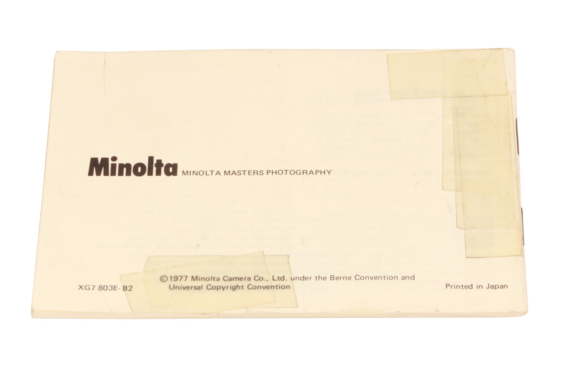 Minolta XG-7 owners manual. 52 pages. English language. In fair vintage condition. There is some tape to the front and back cover and some yellowing to the pages but the contents are still clean and readable. This is an original not a copy.