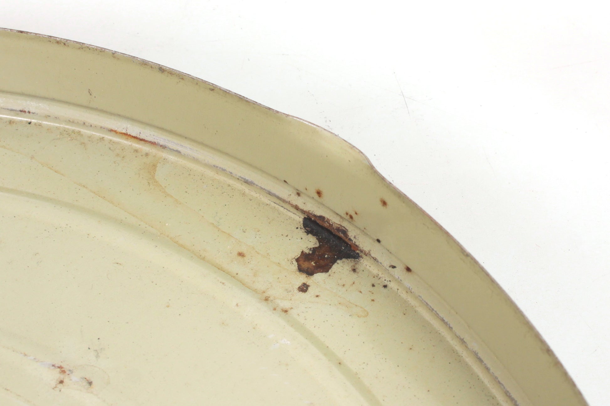 LOT OF TWO METAL 16MM FILM CANS. APPROXIMATE MEASUREMENTS: 9 1/2 INCHES DIAMETER X 1 INCH DEPTH, AND 10 3/4 INCHES DIAMETER X 1 INCH DEPTH. LABELS STATE: EMERGENCY INVESTIGATION OF COAL WASTE EMBANKMENTS, AND GRAND CANYON. THEY ARE VINTAGE ITEMS AND BOTH SHOW SOME GENERAL WEAR AND TEAR, AND SOME AREAS OF RUST. THE LARGER CAN HAS A DENT ON ONE SIDE - THE LID STILL FITS BUT IT IS A BIT STIFF TO TAKE OFF. SOLD AS IS.