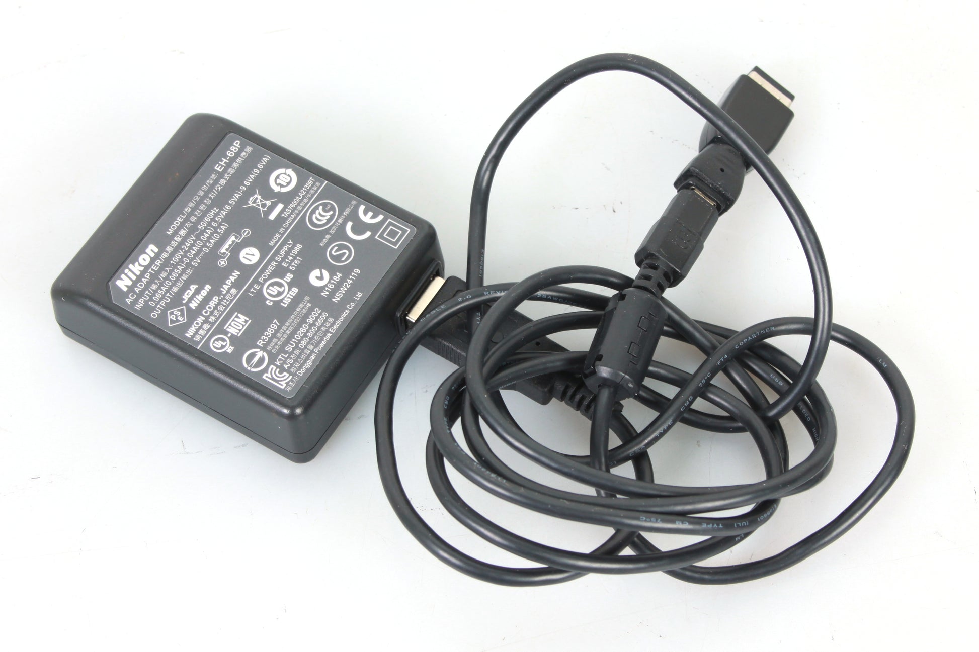 NIKON MODEL EH-68P AC ADAPTER WITH USB CABLE PLUS NDS ATTACHMENT. IN VERY GOOD CONDITION. ONLY LIGHT SIGNS OF USE.