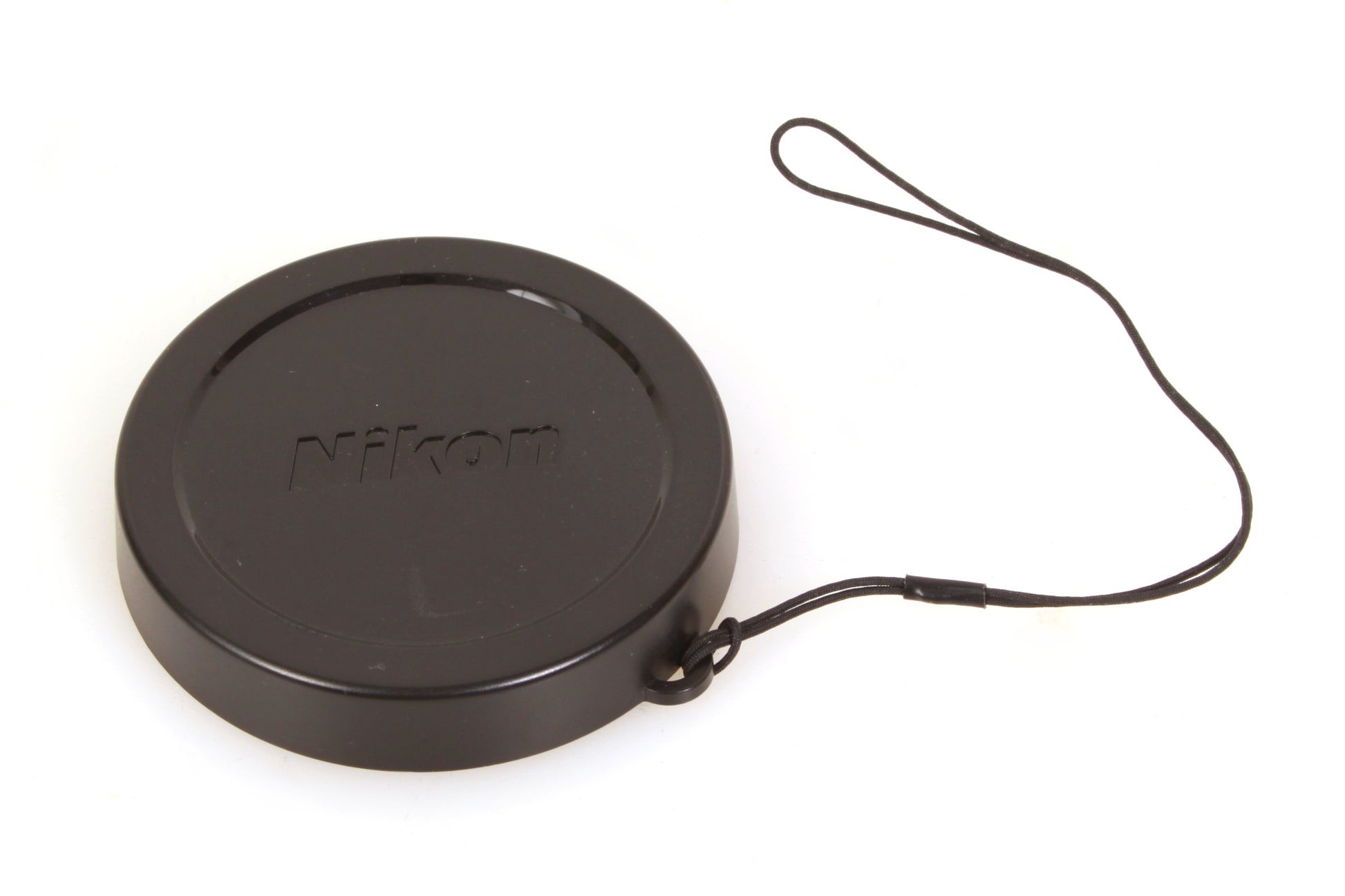Nikon LC-CP18 push-on front lens cap. Black plastic. Inner diameter approximately 59mm. Outer diameter approximately 62mm. In good used condition. Some scratches.