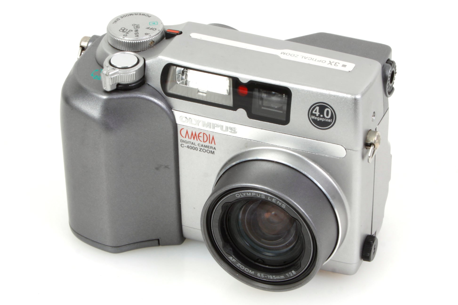 Olympus Camedia C-4000 digital camera. In working order, although it has not been tested for accuracy. Cosmetically it is in very good vintage condition with some light scuffs/scratches. The battery compartment is clean and free of corrosion. Takes 4 AA batteries (not included). Comes with 128MB Smart Media card.