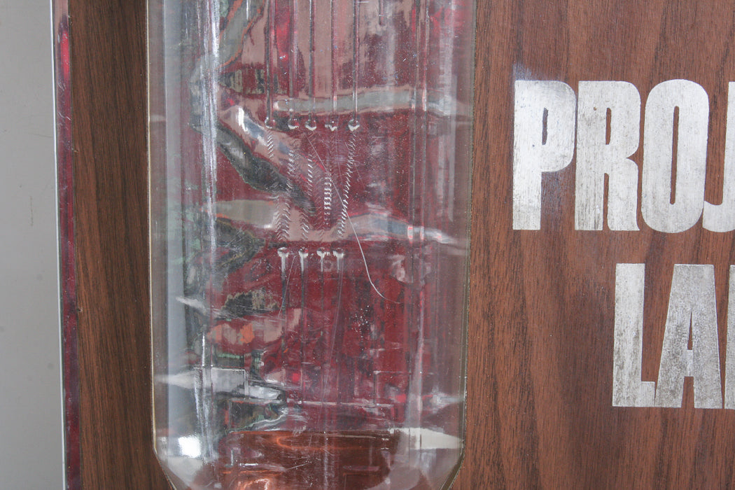 PHOTOGRAPHICA, SYLVANIA BLUE TOP PROJECTOR LAMP SIGN, VINTAGE ORIGINAL. 3D DISPLAY. TABLE TOP FRAME AS WELL AS HOLE MADE BY PREVIOUS OWNER TO HANG ON WALL. DISPLAY FRAME AND 3D LAMP SHOW SOME WEAR, SCRATCHES, DIRT MARKS. VIEW PHOTO FOR MORE DETAILS.