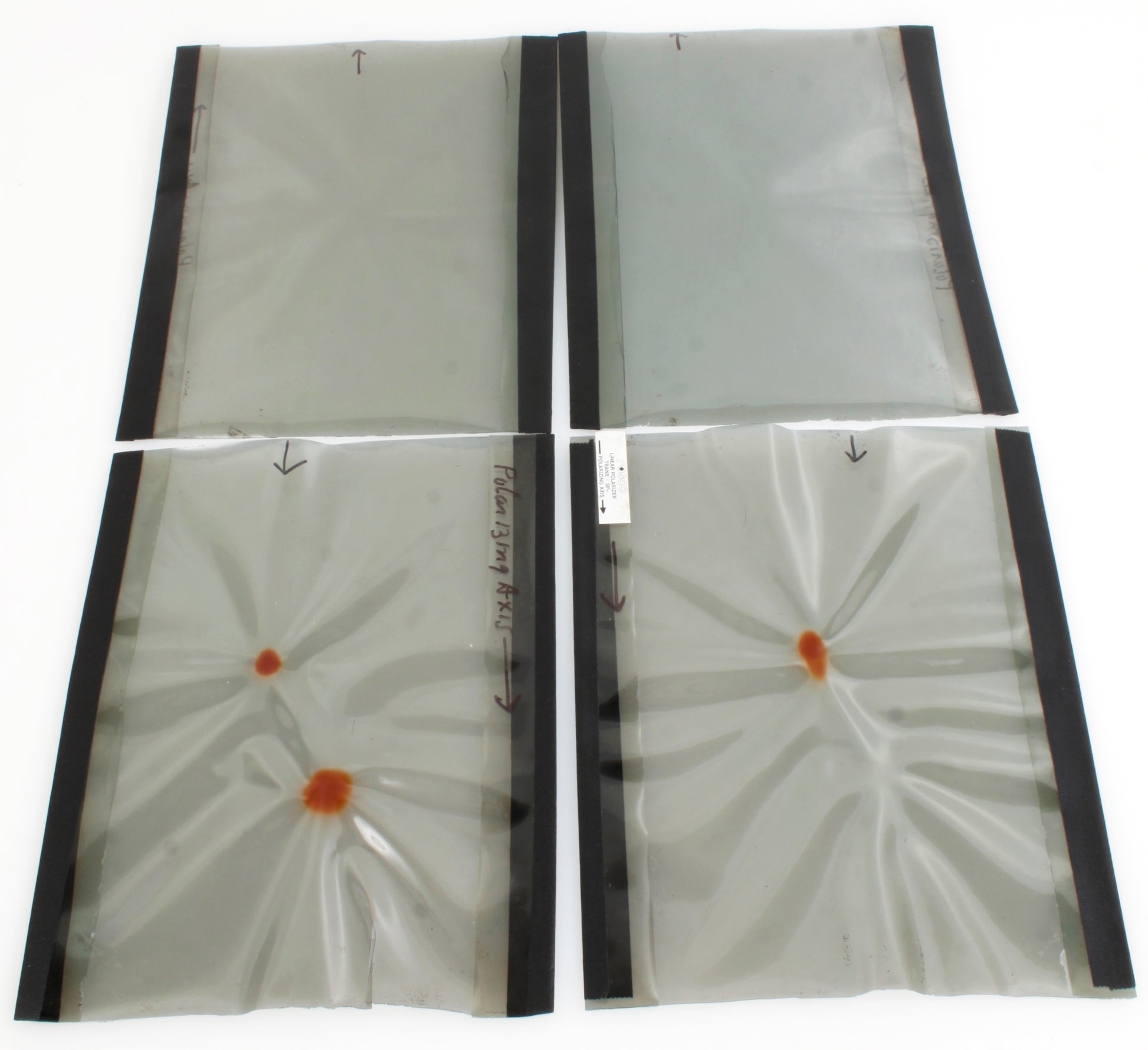 Decent condition. This is a set of 4 polarizing light gels measuring 7 1/2 x 10